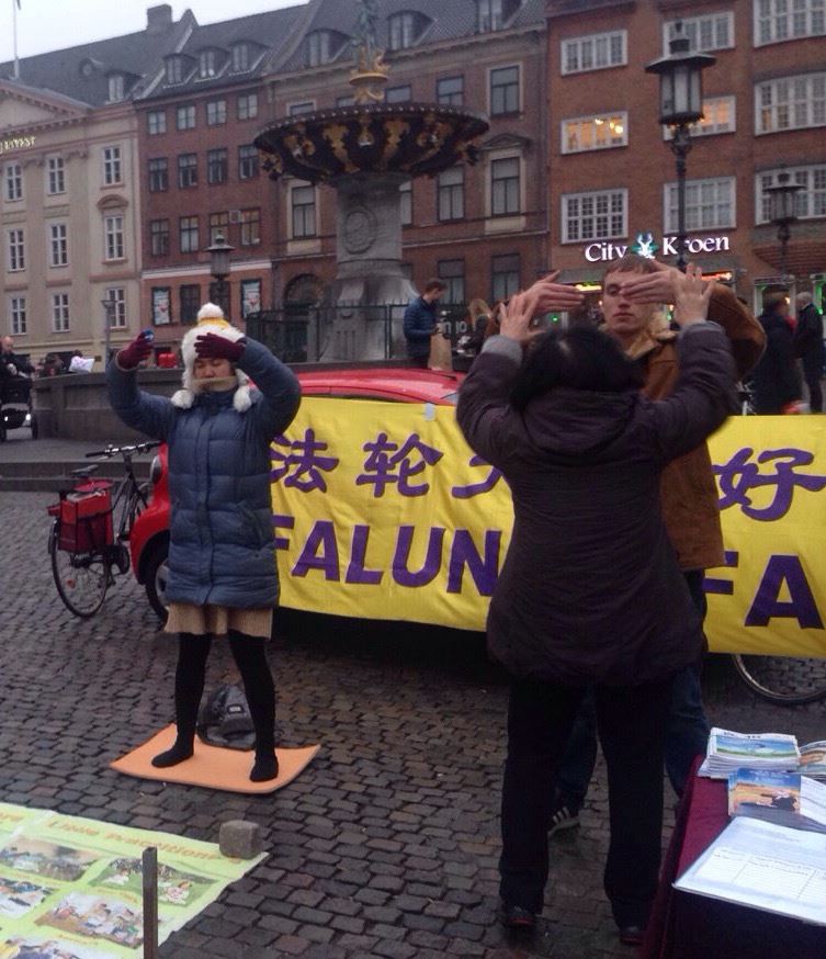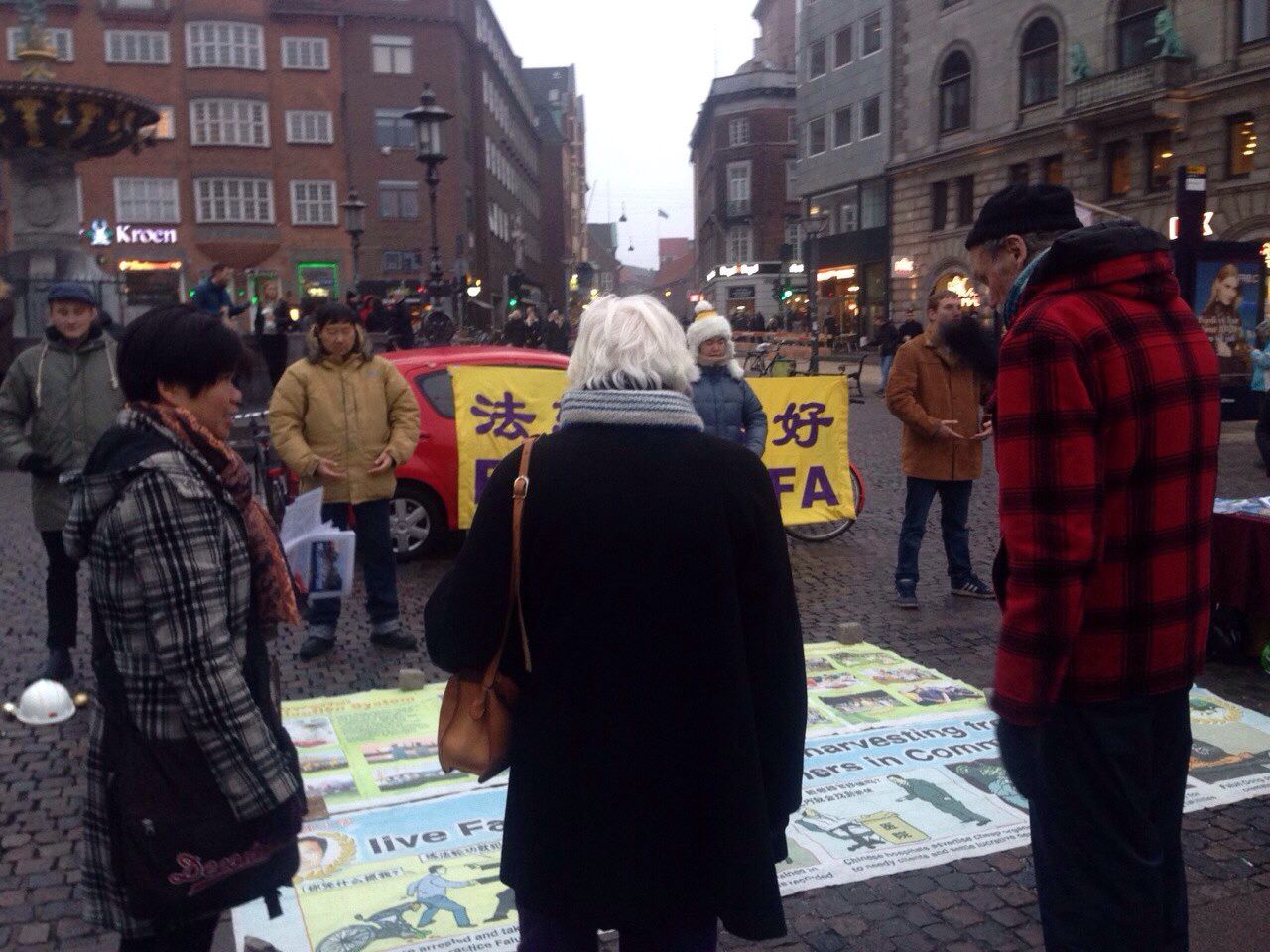 丹麦的法轮功学员经常在周六在市中心举办活动。他们有时在市政厅广场,有时在老广场,为了让更多的人了解在中国正在发生这场迫害,十七年来从来没有间断过。