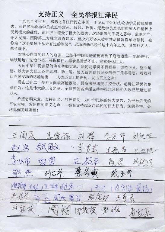 她又说:“什么是爱国主义?这么多年来,我受过那么多的教育,法轮功是真正的爱国主义。”临别时,她把自己的真实姓名告诉法轮功学员,流着眼泪说:“全世界我谁都不信任,我只信任你们法轮功!”