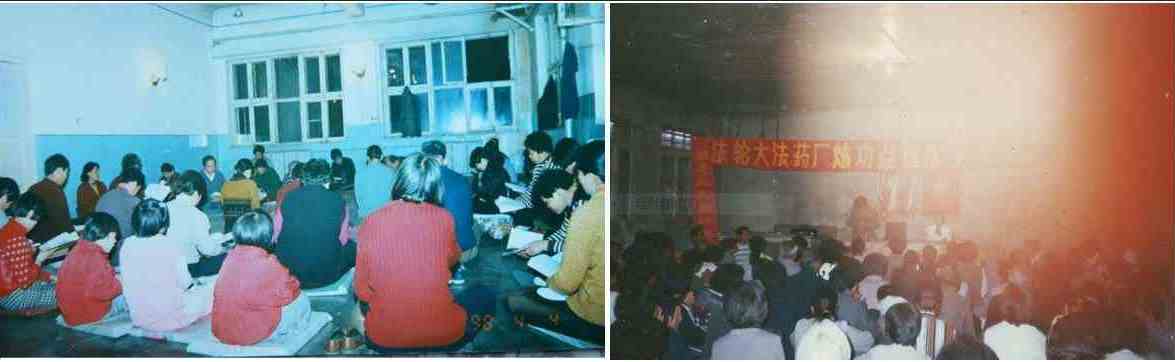 在这些不定期召开的修炼切磋交流会中,规模较大的有两次,一次是在二旅社,有四百多人参加;一次是在省牧校,有一千七百多人,这是唯一的一次全市城乡范围的切磋交流会。在心得交流会期间,有些爱好摄影的法轮功学员拍下了一些照片,照片中,法轮大法的标志——法轮频频显现,有些照片的会场呈现出师父在《转法轮》中描述的“红光罩着,一片红”的神奇景象。