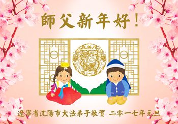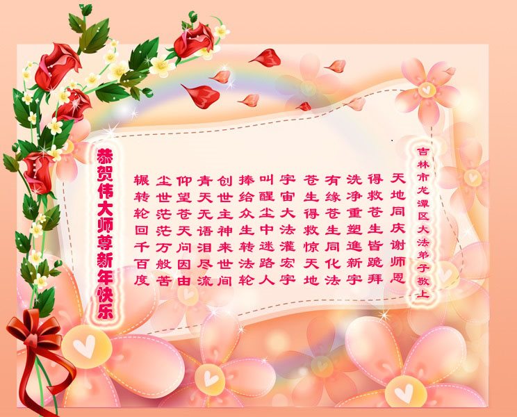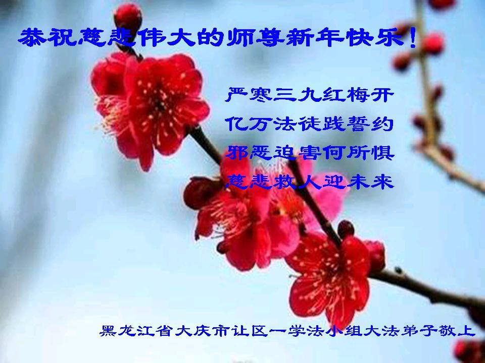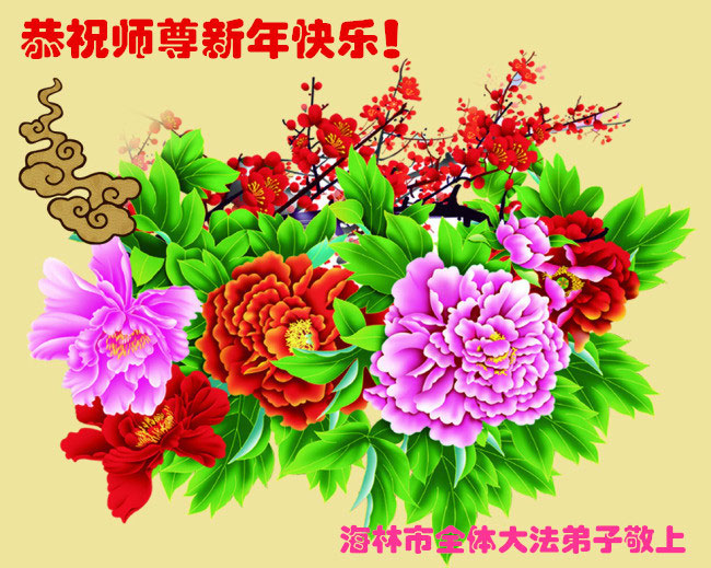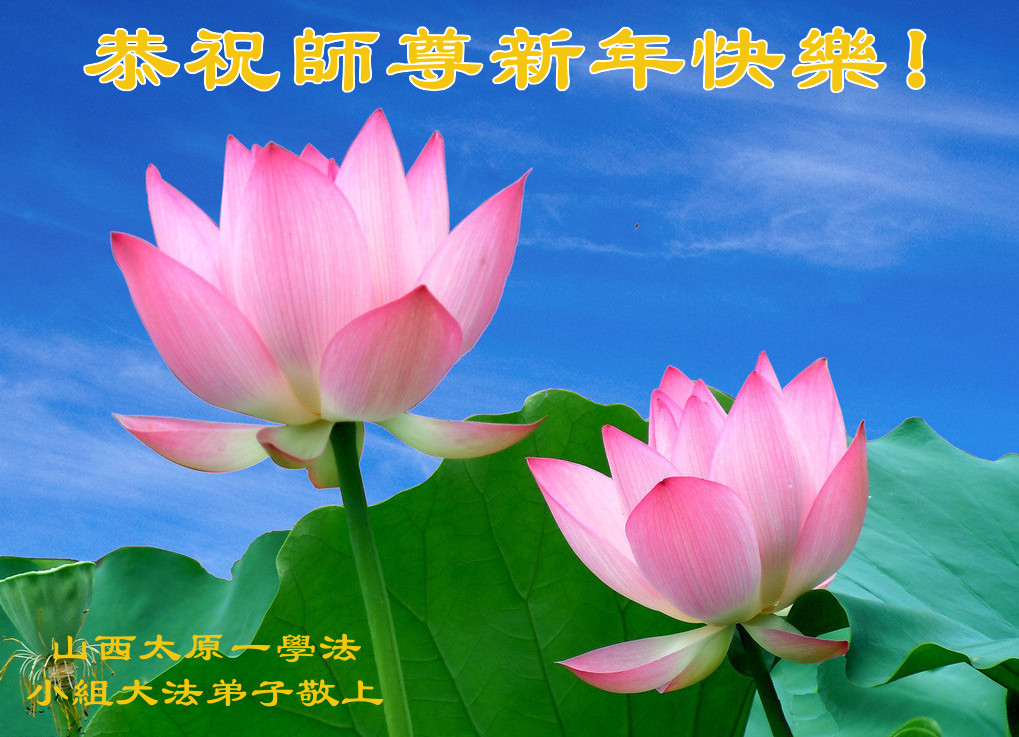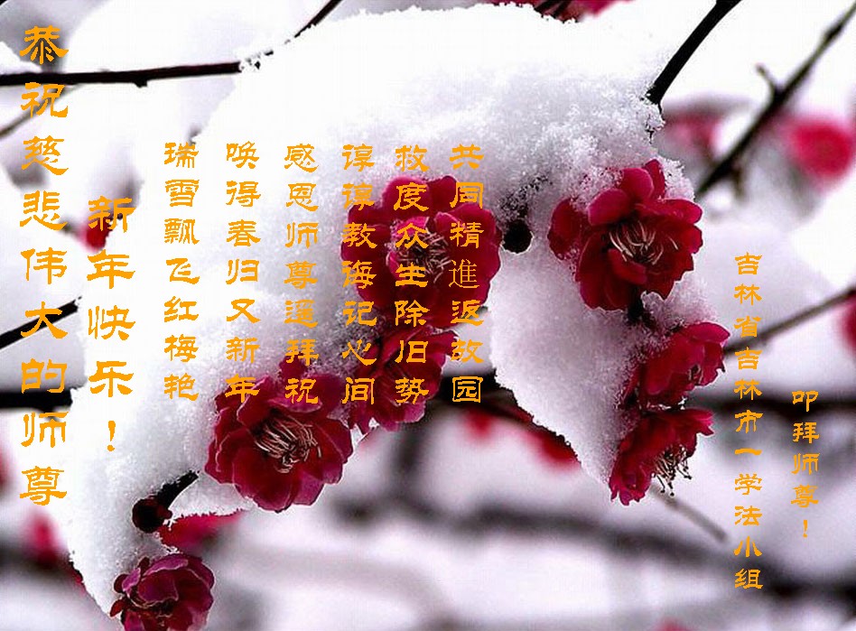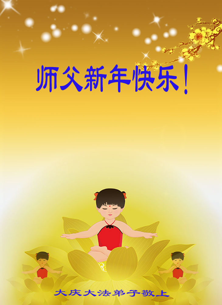 在新的一年到来之日,我们这些老年大法弟子及其家人向您慈悲伟大的师尊拜年!恭祝师父新年好!