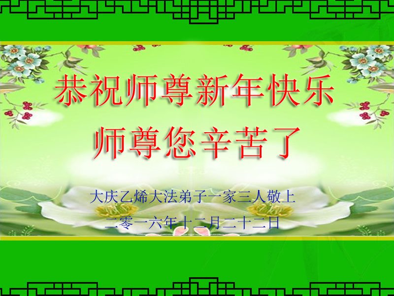 弟子在元旦佳节代表全家三代子孙向尊敬伟大的师父问好!师父辛苦了!弟子一定听师父的话,做好三件事,多学法、学好法,多救人。