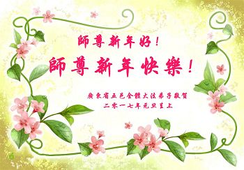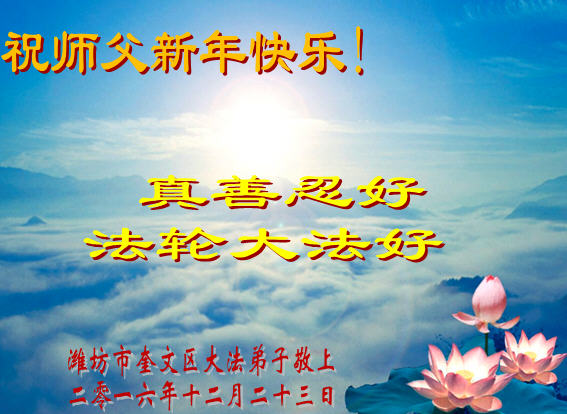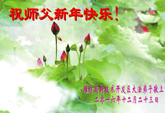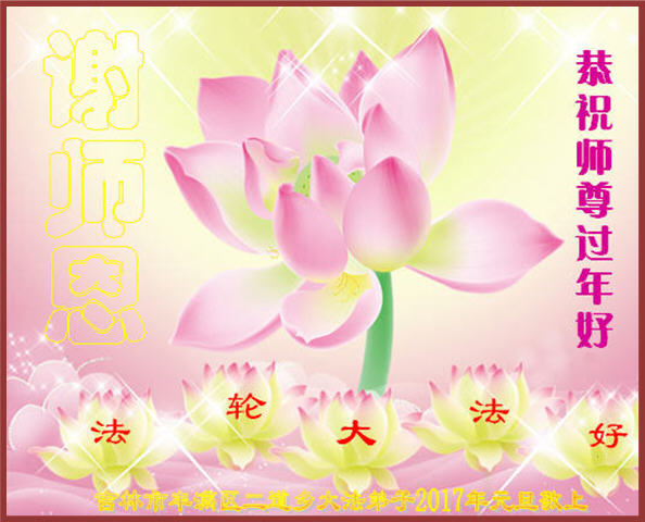 在二零一七年新年即将到来之际,我们怀着无限感恩的心情,向慈悲伟大的师尊致以新年的问候!师尊您好!师尊辛苦了!在新的一年里,在师尊以巨大的承受换来的宝贵时间里,弟子们决心多学法,静心学法,读懂法,用法来归正自己的一思一念、一言一行,时时事事向内找,去掉还未修去的人心、观念、执着,脚踏实地、踏踏实实做好三件事,多救世人,兑现自己的誓约,跟师父回家。叩拜师父!