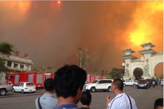 那是二零一四年的五月二十九日下午三点钟左右,山东省威海市里口山到仙姑顶地带发生了一场罕见的山火火灾。火灾覆盖线长达七公里,烈火持续燃烧七、八个小时,由于山上多年沉积的枯草落叶深厚,火着起来凶猛,靠人工根本无法扑灭大火,消防部门调用的直升飞机经过三天的时间确保山火完全扑灭。绿树变成了枯树木炭,山峦一片废墟。