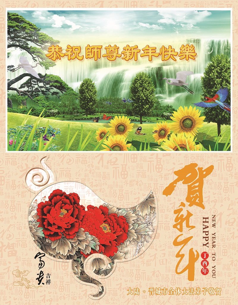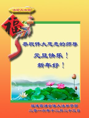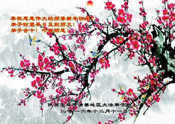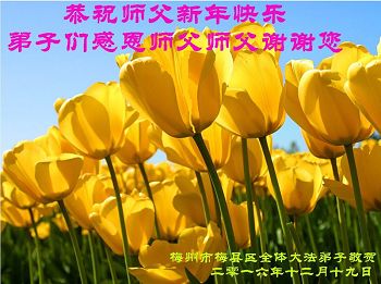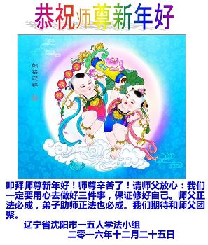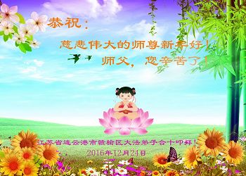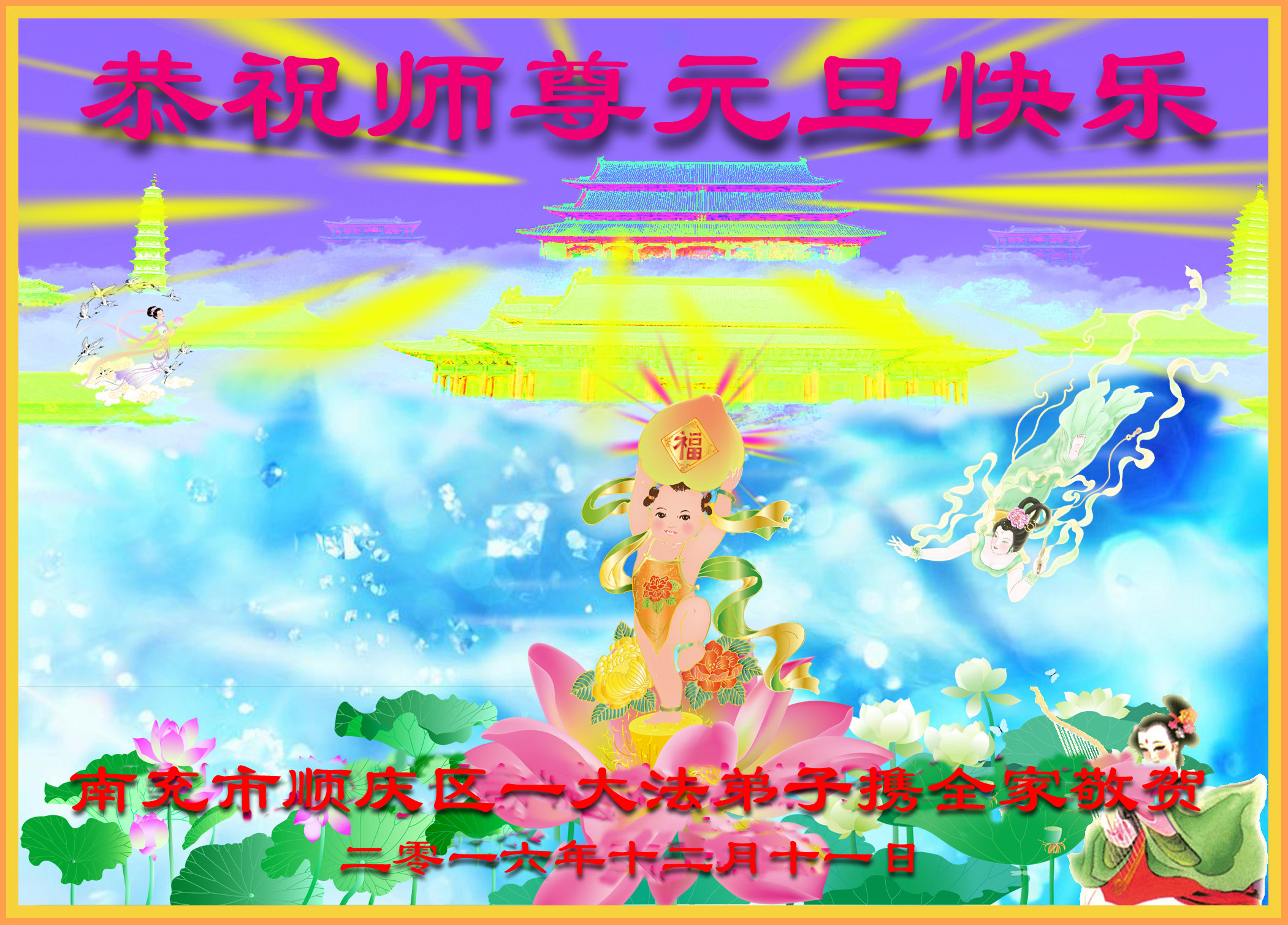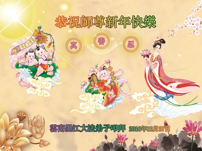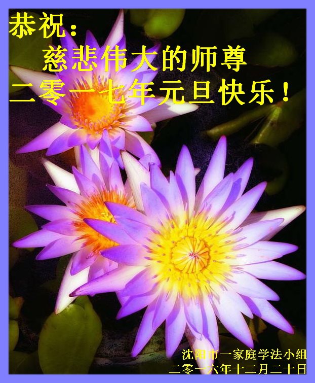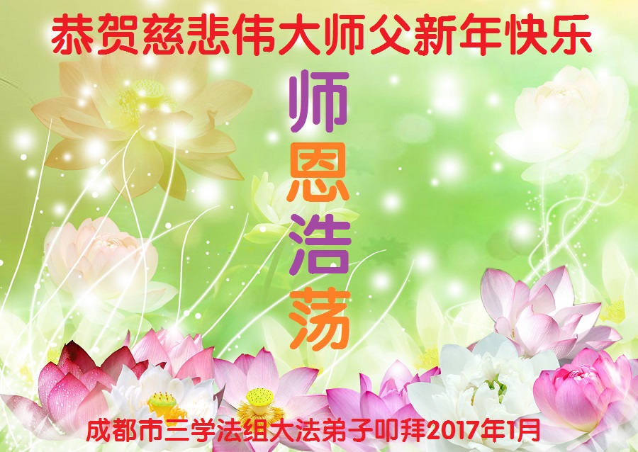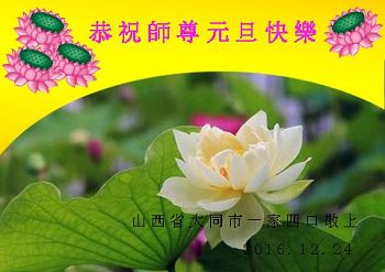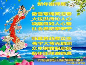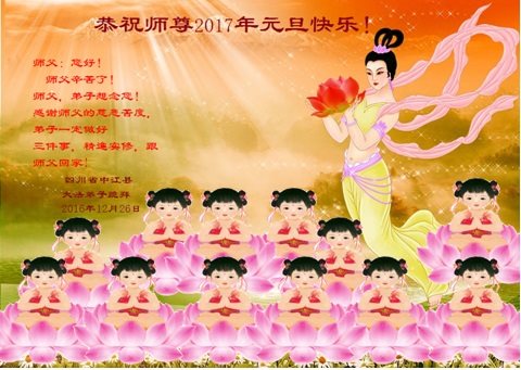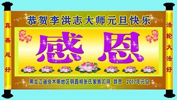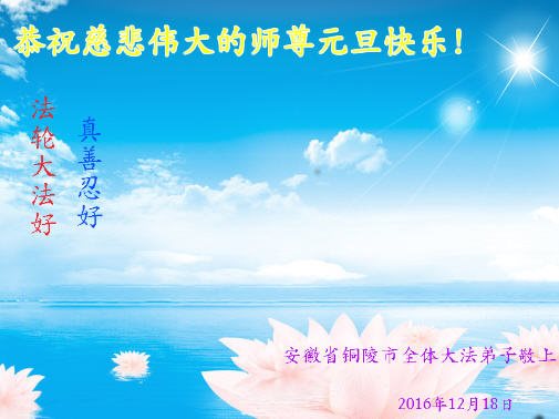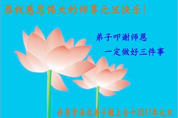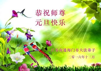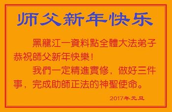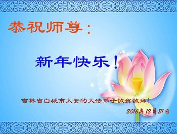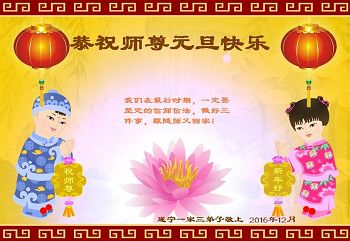 【明慧网二零一六年十二月三十日】二零一七年元旦到来之际,中国大陆各地区、各阶层、各行业的大法弟子纷纷把发自内心的节日贺词、贺卡等寄给明慧网,表达对李洪志师父的感恩与新年问候。大法弟子们都感到师父用巨大承受延续来的时间的宝贵,大法弟子必须珍惜时间,珍惜每一位有缘的众生。