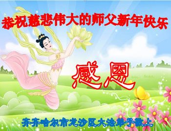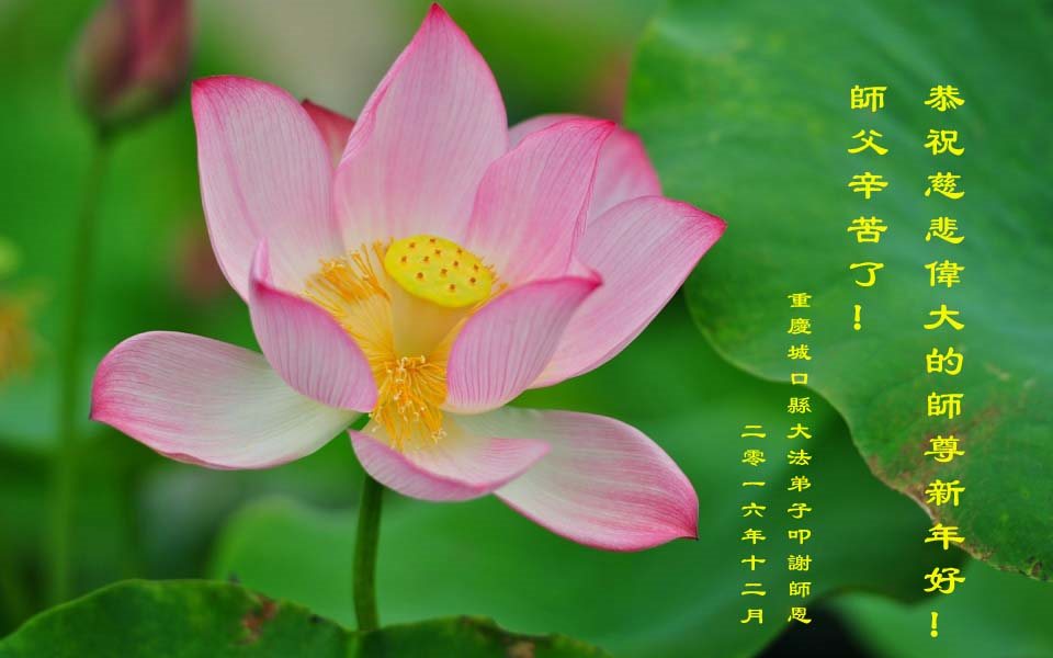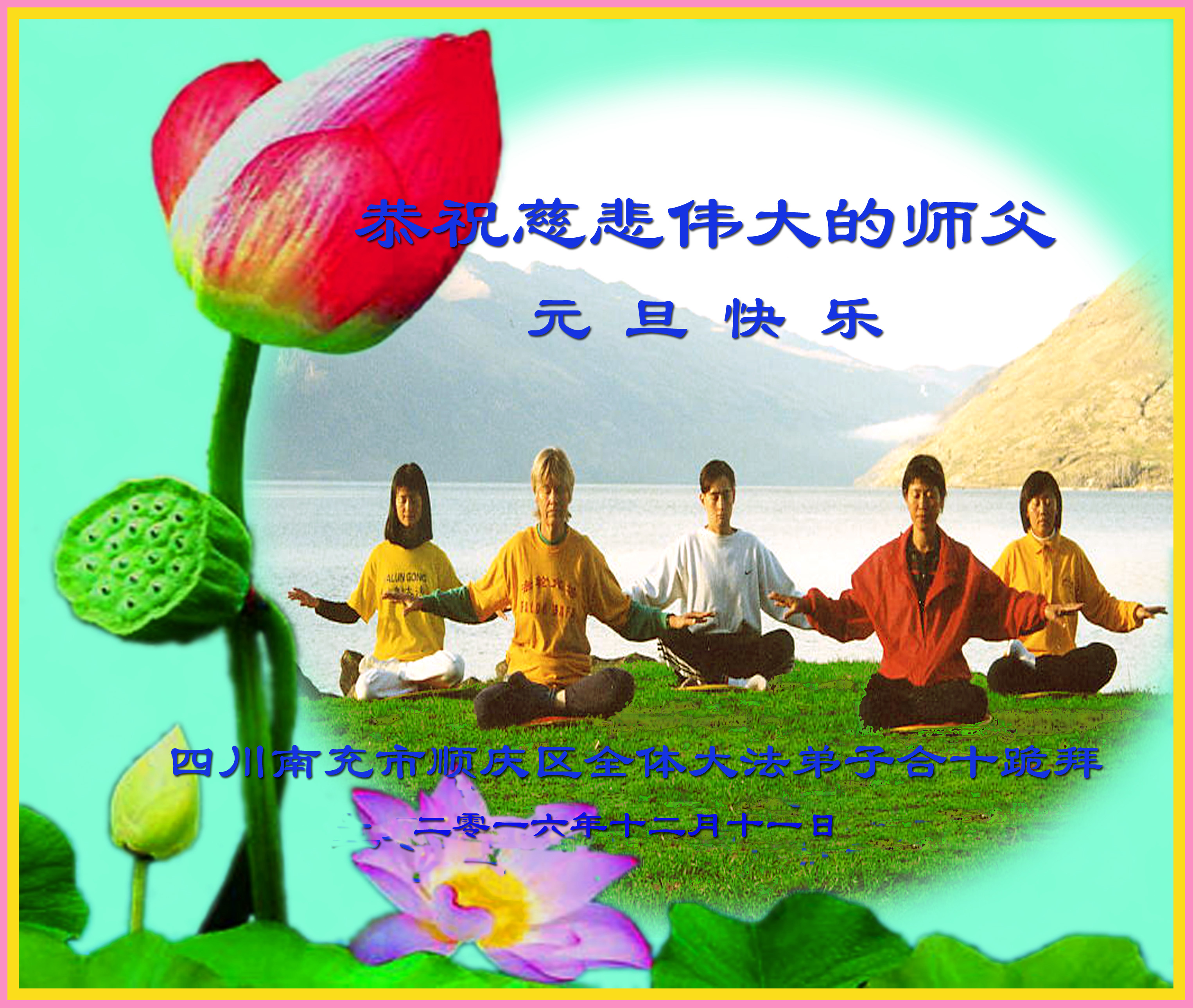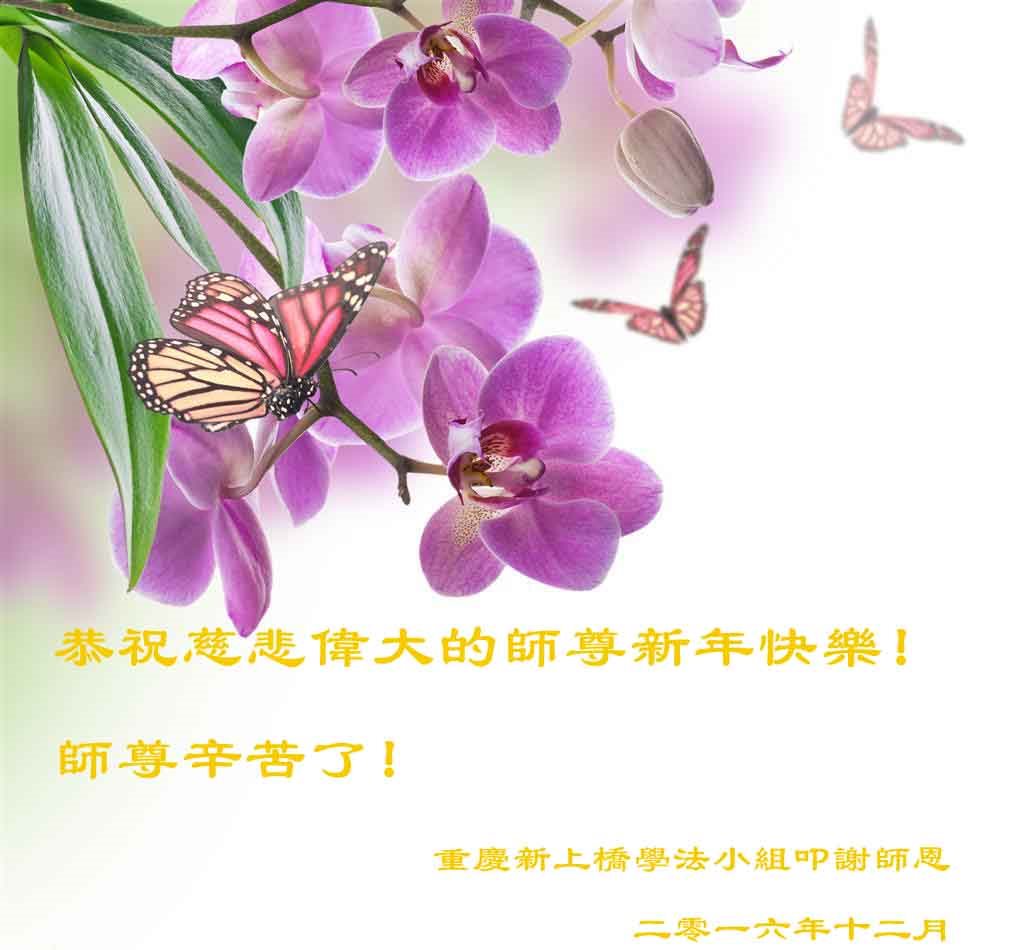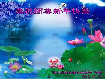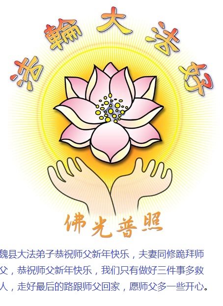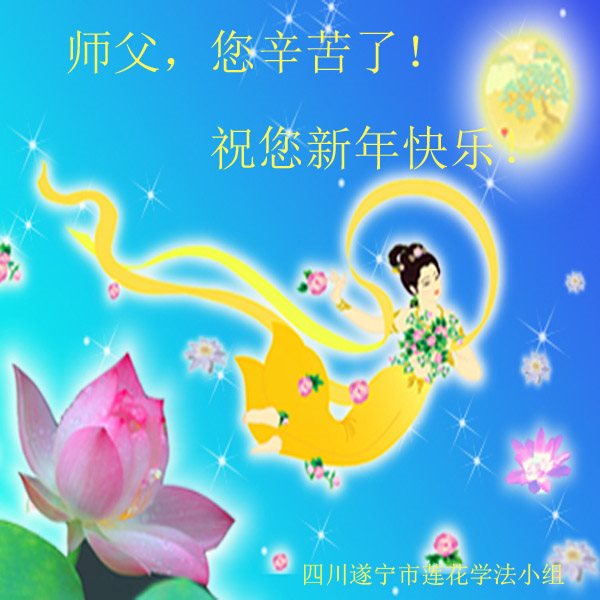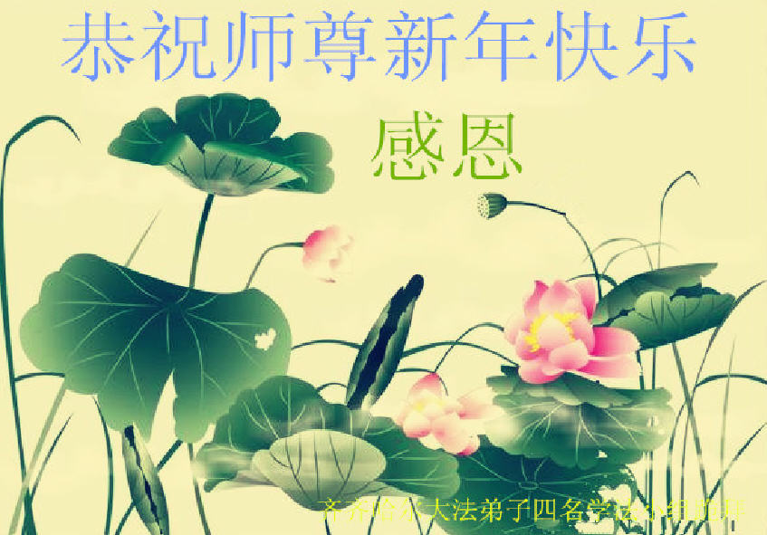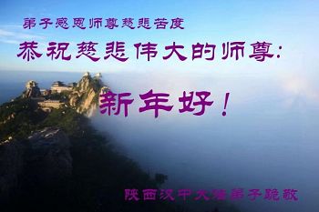 师尊您好!师尊您辛苦了!每逢佳节倍思亲,我们叩谢师父的慈悲救度!感恩师尊慈悲呵护我们一路走到了今天,并为我们承受一切魔难,这浩荡佛恩,人的语言无以言表。千言万语汇成一句话:恭祝师尊新年快乐!在新的一年里,我们会更加精進,努力做好师尊教诲的三件事,多学法、学好法,遇事向内找,修好自己,多多救人,完成自己的大愿。让师尊多一份欣慰,少一份操劳。再次感恩慈悲伟大的师尊!重庆市潼南区大法弟子谢师恩!