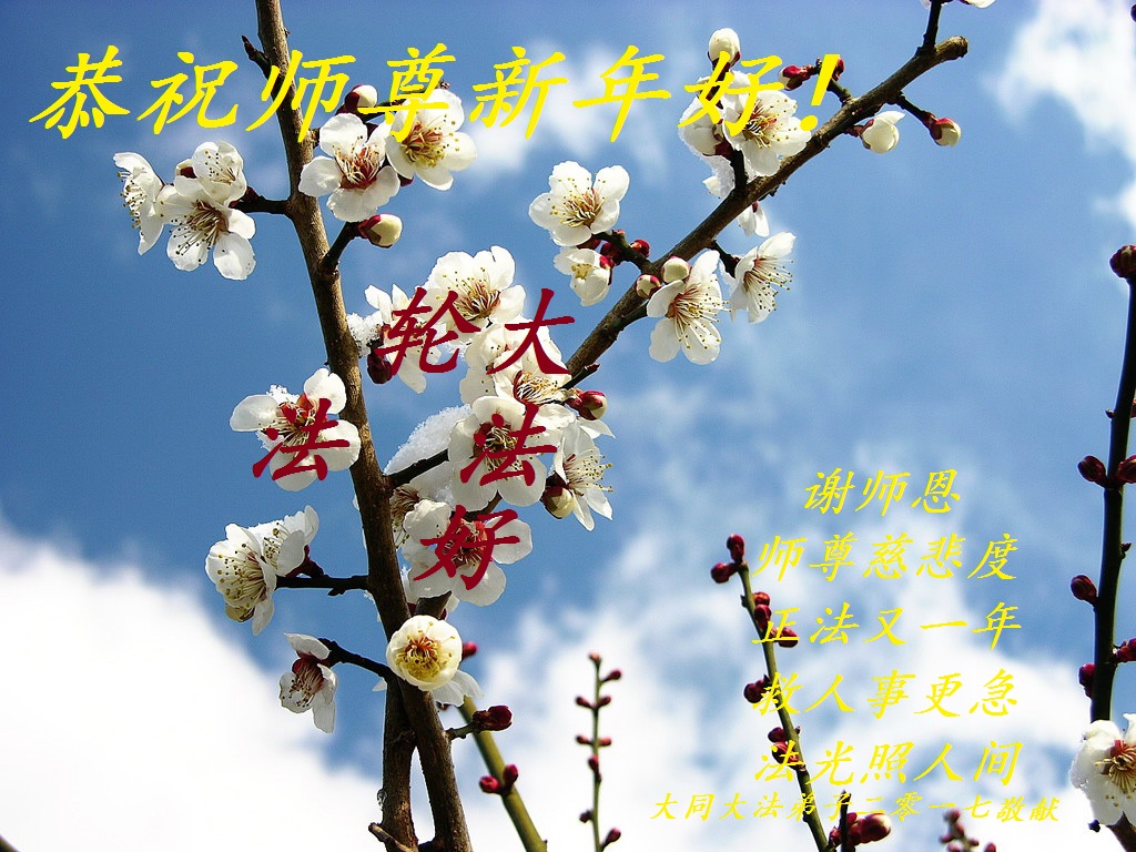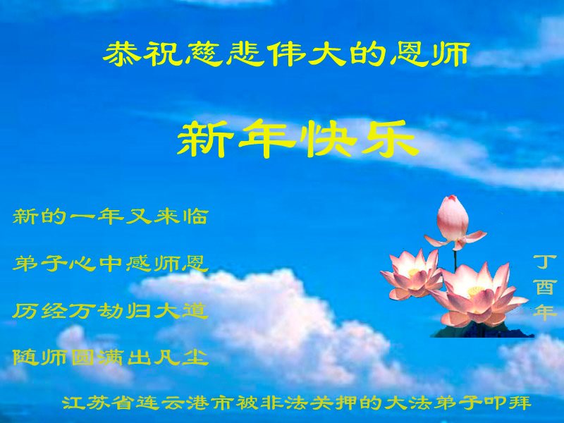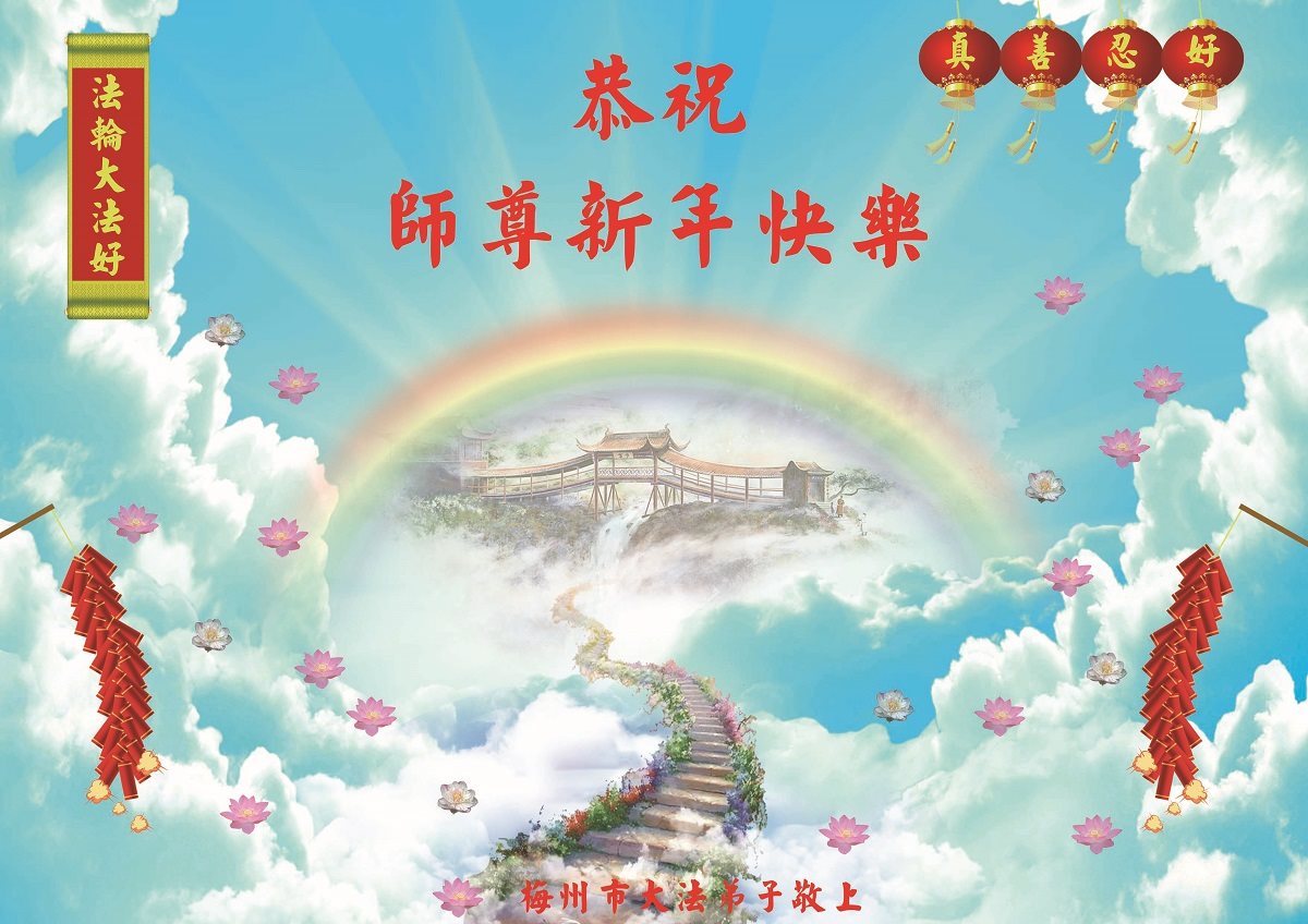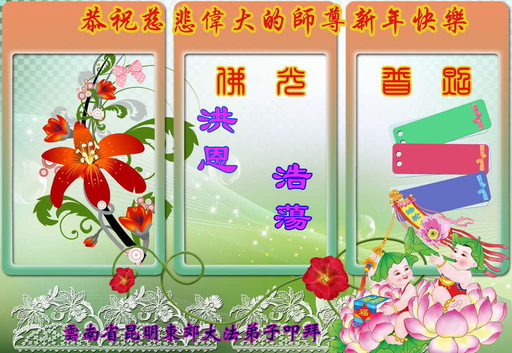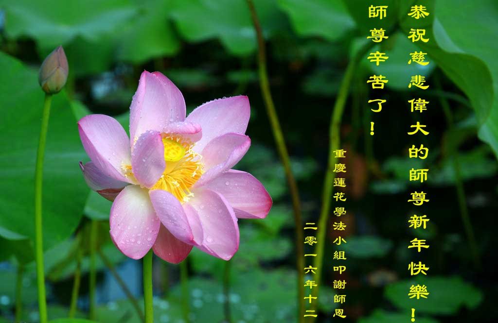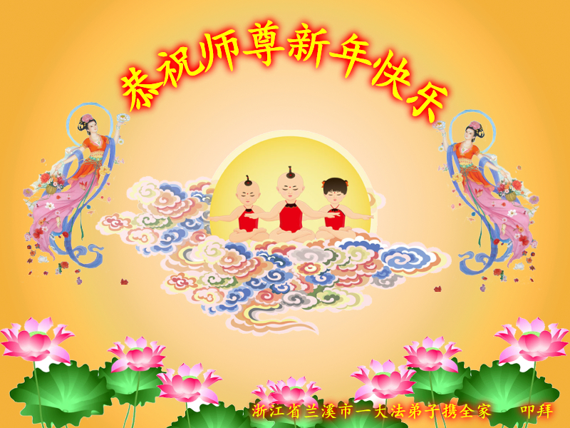 师尊您好!师尊您辛苦了!每逢佳节倍思亲,我们叩谢师父的慈悲救度!感恩师尊慈悲呵护我们一路走到了今天,并为我们承受一切魔难,这浩荡佛恩,人的语言无以言表。千言万语汇成一句话:恭祝师尊新年快乐!在新的一年里,我们会更加精進,努力做好师尊教诲的三件事,多学法、学好法,遇事向内找,修好自己,多多救人,完成自己的大愿。让师尊多一份欣慰,少一份操劳。再次感恩慈悲伟大的师尊!重庆市潼南区大法弟子谢师恩!