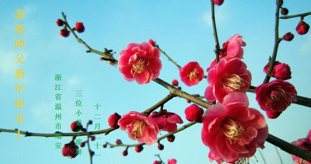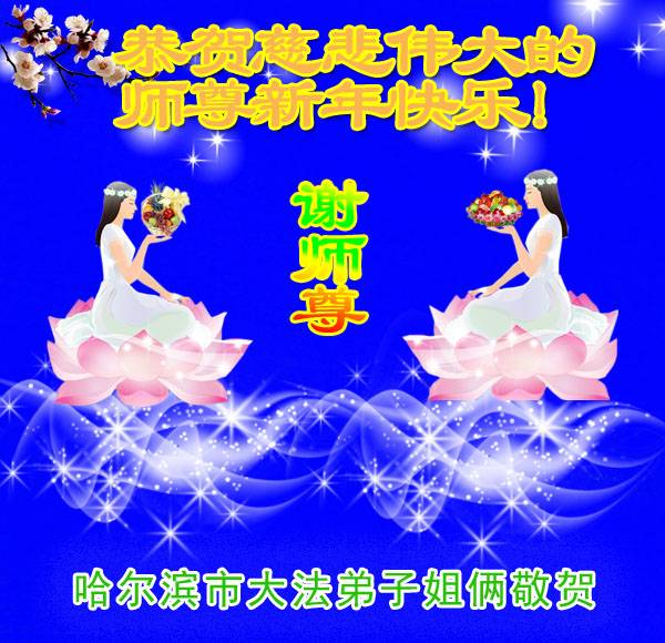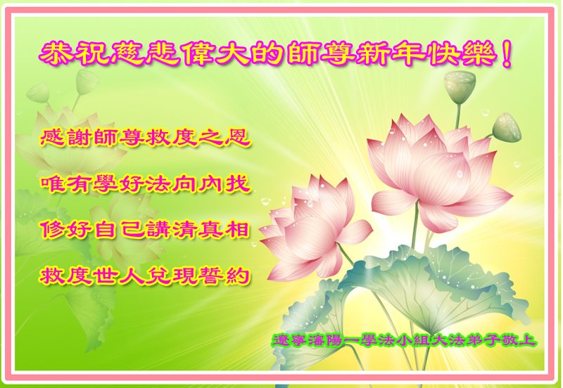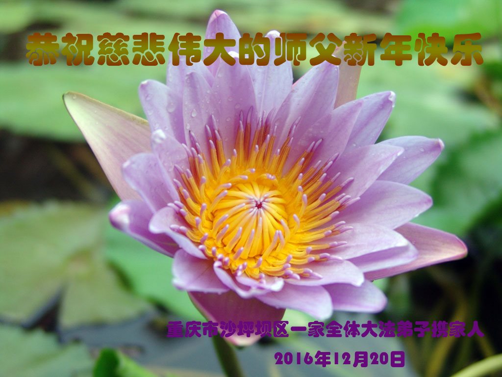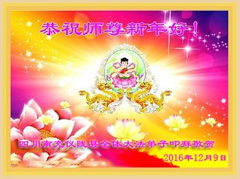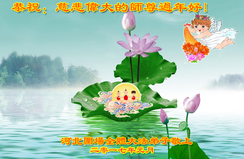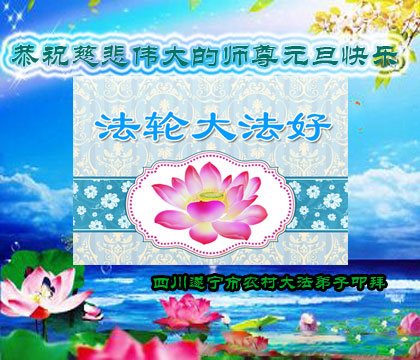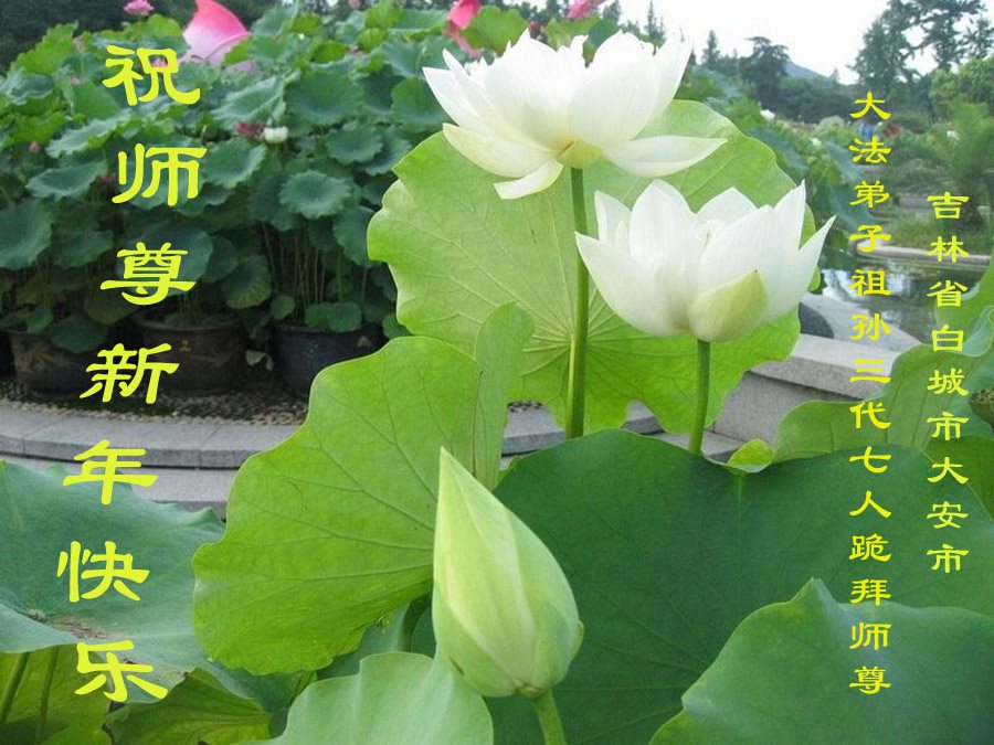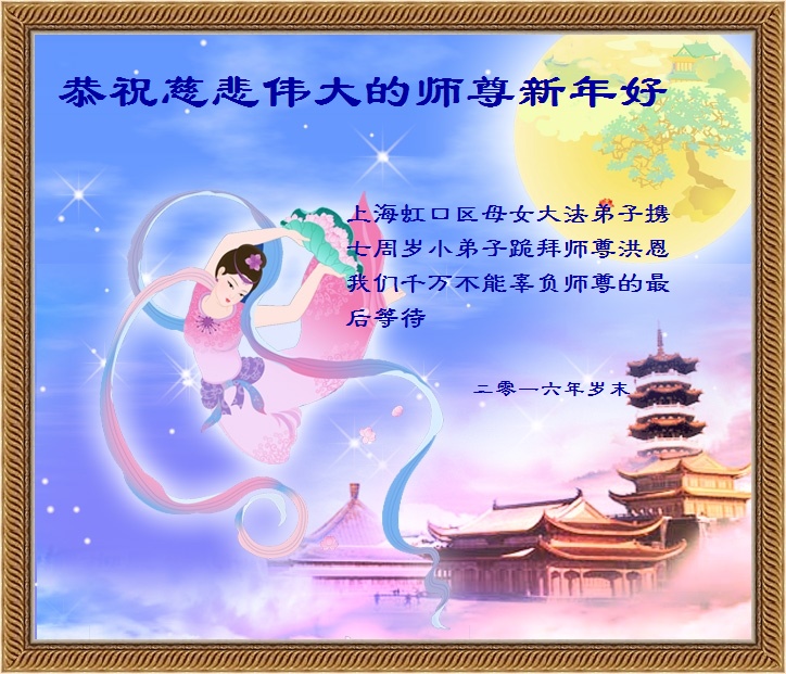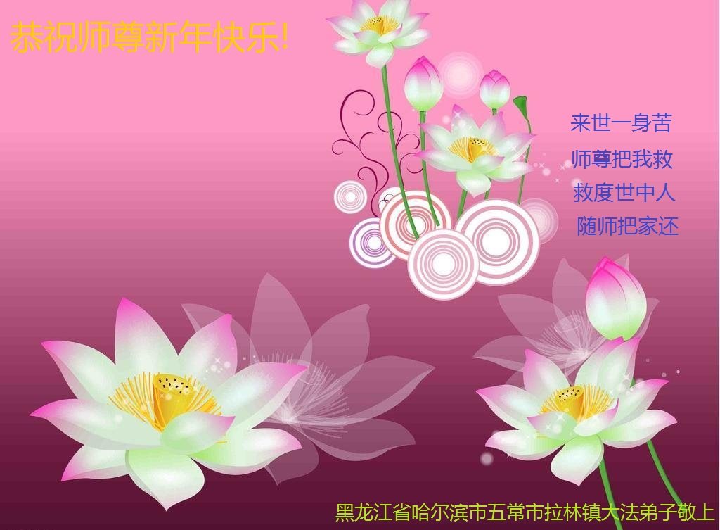 师尊您好!师尊您辛苦了!每逢佳节倍思亲,我们叩谢师父的慈悲救度!感恩师尊慈悲呵护我们一路走到了今天,并为我们承受一切魔难,这浩荡佛恩,人的语言无以言表。千言万语汇成一句话:恭祝师尊新年快乐!在新的一年里,我们会更加精進,努力做好师尊教诲的三件事,多学法、学好法,遇事向内找,修好自己,多多救人,完成自己的大愿。让师尊多一份欣慰,少一份操劳。再次感恩慈悲伟大的师尊!重庆市潼南区大法弟子谢师恩!