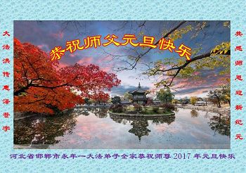 石家庄裕华区大法弟子二零一七公元新年来临之际,携全家敬祝恩师新年好!