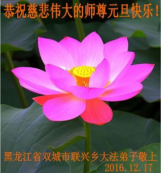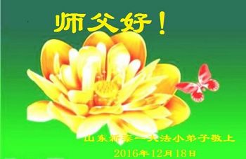 慈悲伟大的师父您好!在2016年以往的日子里,每时每刻我都用师父的法来严格要求自己、对照自己。弟子能有健康的身体、心灵的净化这一切都离不开师父的慈悲呵护!虽然现在被邪恶迫害的无家可归,弟子无怨无悔,精進的做好三件事,救度更多有缘之士。弟子吃点苦不算什么,能为救度天下苍生尽自己责任和使命是弟子的荣幸!感恩师父对弟子的佛恩浩荡!感恩师父对弟子和家人的生命保护!在新的一年里直至法正人间,弟子继续兑现自己的史前誓约和使命,让师父少操一份心、多一份欣慰!再次代表家人向师父叩谢救度之恩!合十敬上