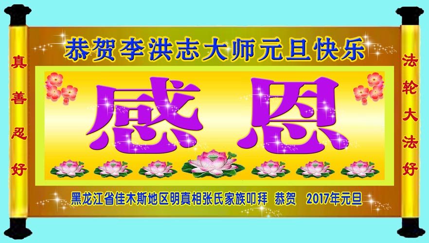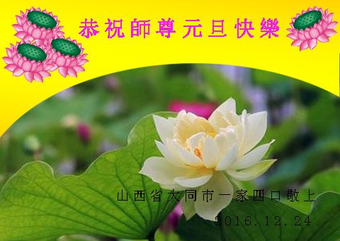 【明慧网二零一六年十二月三十日】越来越多的中国民众见证了诚心诵念“法轮大法好!真善忍好!”而遇难呈祥、得福报的惊喜,认识到法轮功是度人、救人的佛法。在二零一七年元旦到来之际,他们纷纷敬祝李洪志大师新年快乐!感谢李大师的救命之恩!