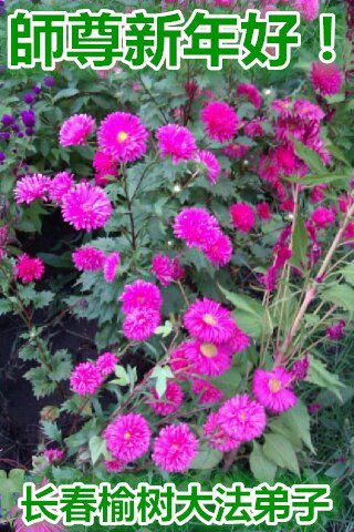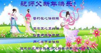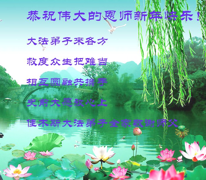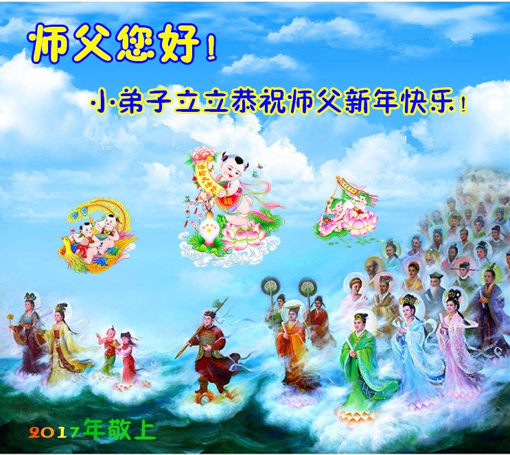 师父新年好!我今天给您拜年了!在邪*党-迫害的十七年,别人说什么我都不听,就听师父的,我一定按照师父的要求做,跟师父走。