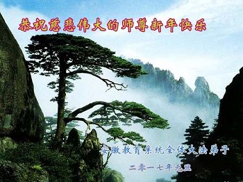 安徽黄山市大法弟子恭祝师尊过年好!他们表示,在神的路上奋力前行,珍惜每一个可贵的中国人,多救人。