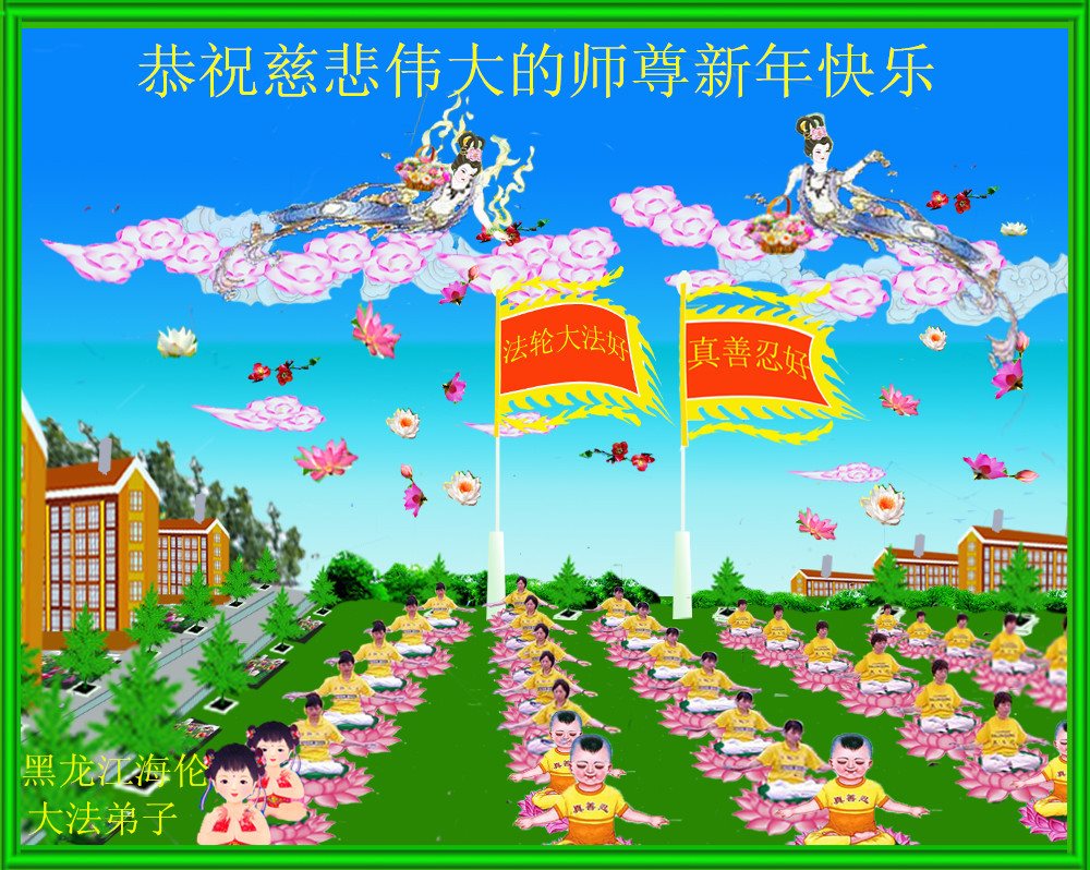 黑龙江大庆油田大法弟子家知道“法轮大法好、真善忍好”的女儿恭祝慈悲伟大的李老师新年好!新年快乐!