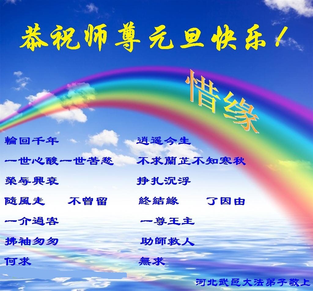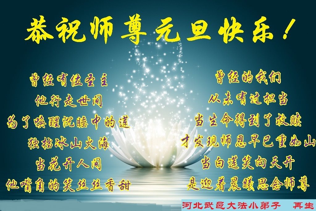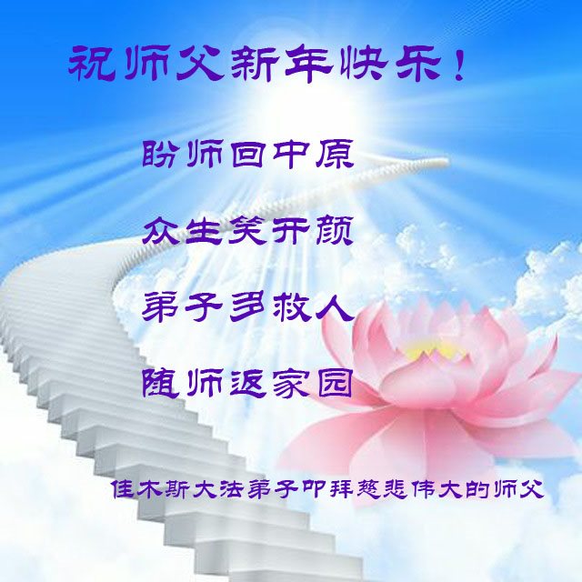 新的一年来临,是伟大的师尊为众生太多太多的操劳才换来这崭新的一页。弟子唯有跟上正法進程,不断做好“三件事”,才不辜负师尊的教导和期盼。在此,弟子恭祝伟大的师尊元旦快乐!