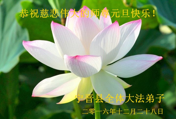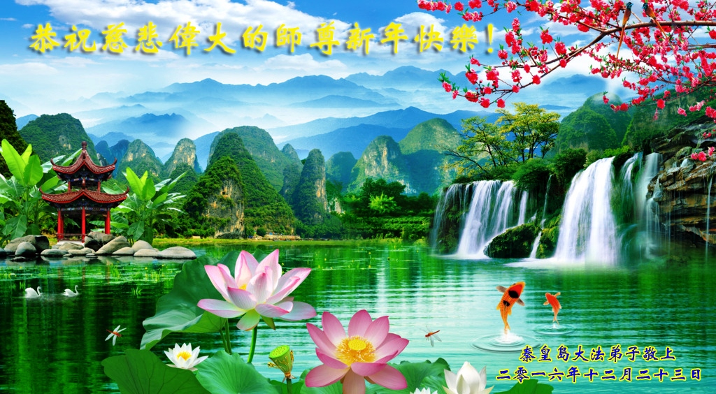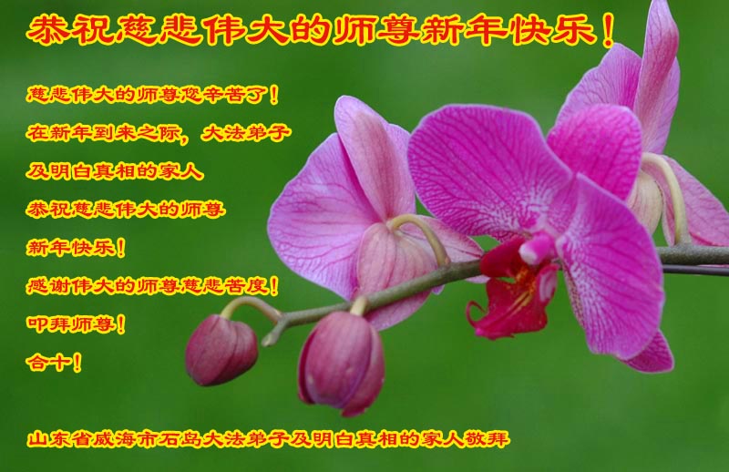 值此元旦佳节即将来临之际,我们渔村全体大法弟子以及明真相的世人特作此敬予师尊,感谢师尊对众生的慈悲苦度之洪恩!山东威海市渔村全体大法弟子及明真相的世人跪拜敬上!