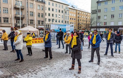 高个子的帕西(Pasi)先生和他的女友听完法轮功真相后,俩人在反迫害征签簿上签名,以此表达他们制止中共对法轮功学员的迫害的心声。帕西(Pasi)先生很喜欢中国古老传统文化,他曾经四次去过中国,会说一些中文,他和法轮功学员进行了长时间的交谈,进一步了解了更多关于法轮功的信息,临走时他用中文向法轮功学员祝贺新年好并和学员合影留念。