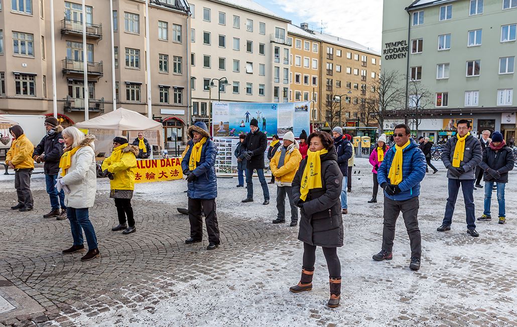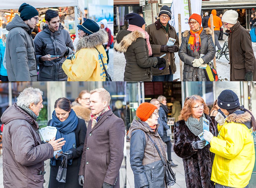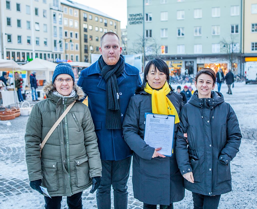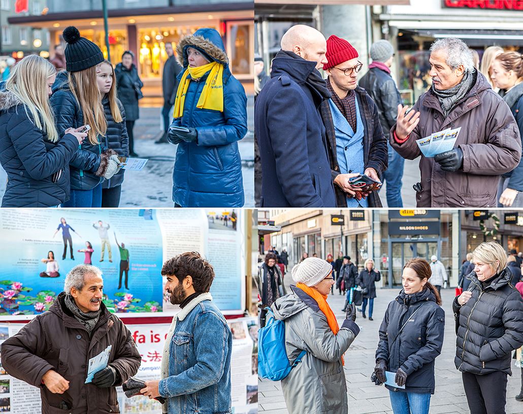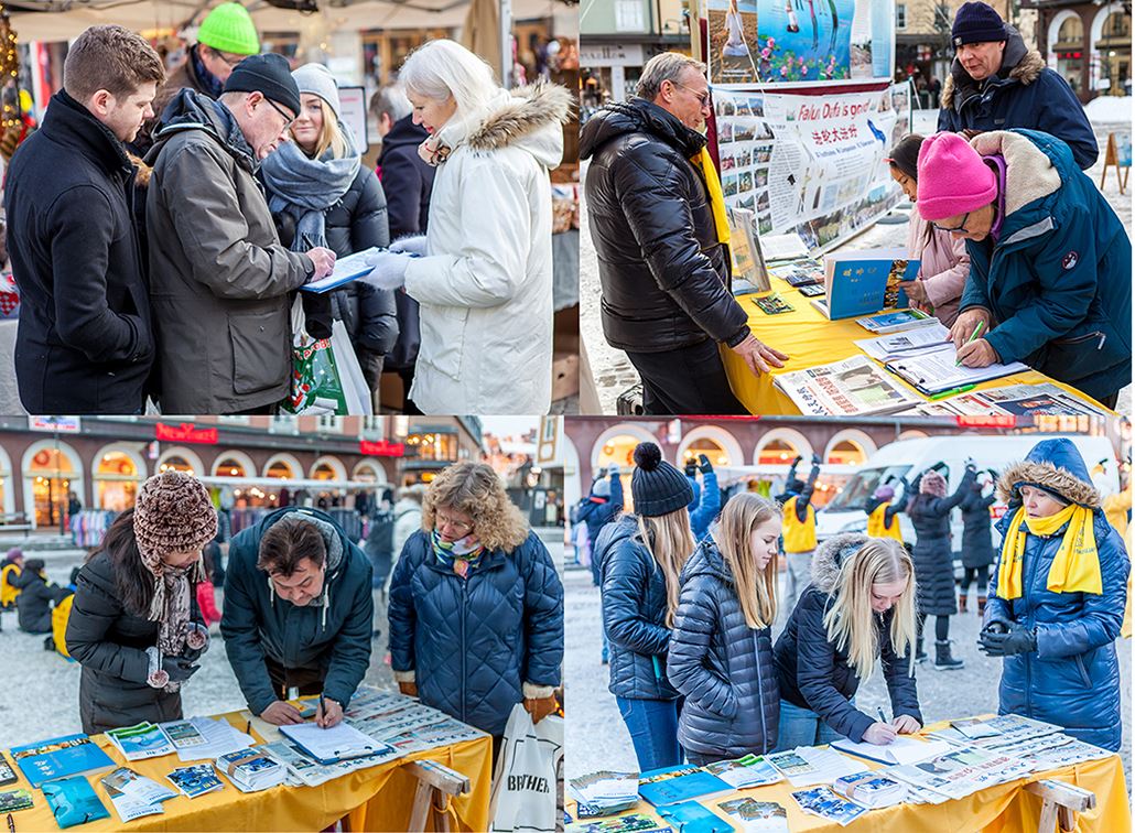 二零一六年十二月三至四日,瑞典法轮功学员聚集在林雪平市中心广场举行讲真相反迫害征签活动,学员们以演示法轮功的五套功法、横幅展板、发放真相资料等形式向当地民众介绍什么是法轮功,同时揭露中共迫害法轮功的事实真相。活动第一天的时候,《林雪平邮报》的记者也来到了活动现场拍照,并对现场的法轮功学员进行了采访。