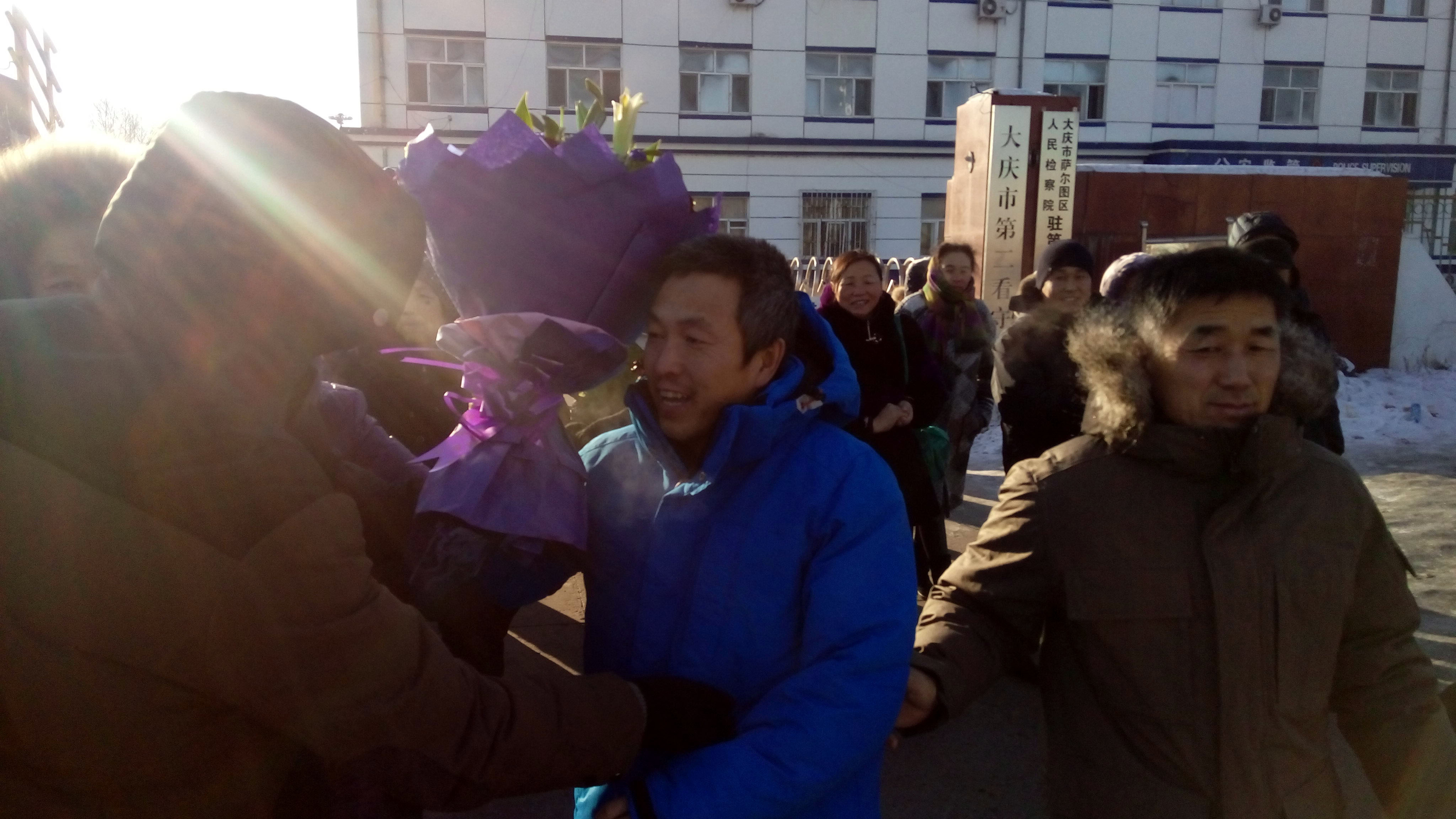赵文广结束8个月非法关押,于2016年1月27日回到家中。众亲友和同修前往大庆看守所迎接。