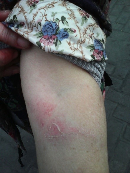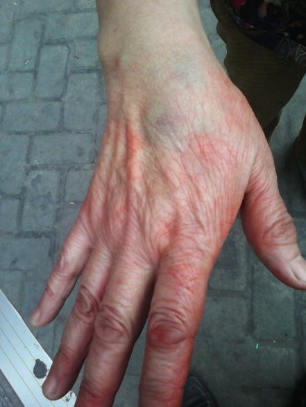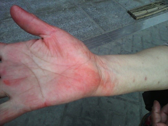 ![]() 图1:左手臂皮肤被擦伤 |