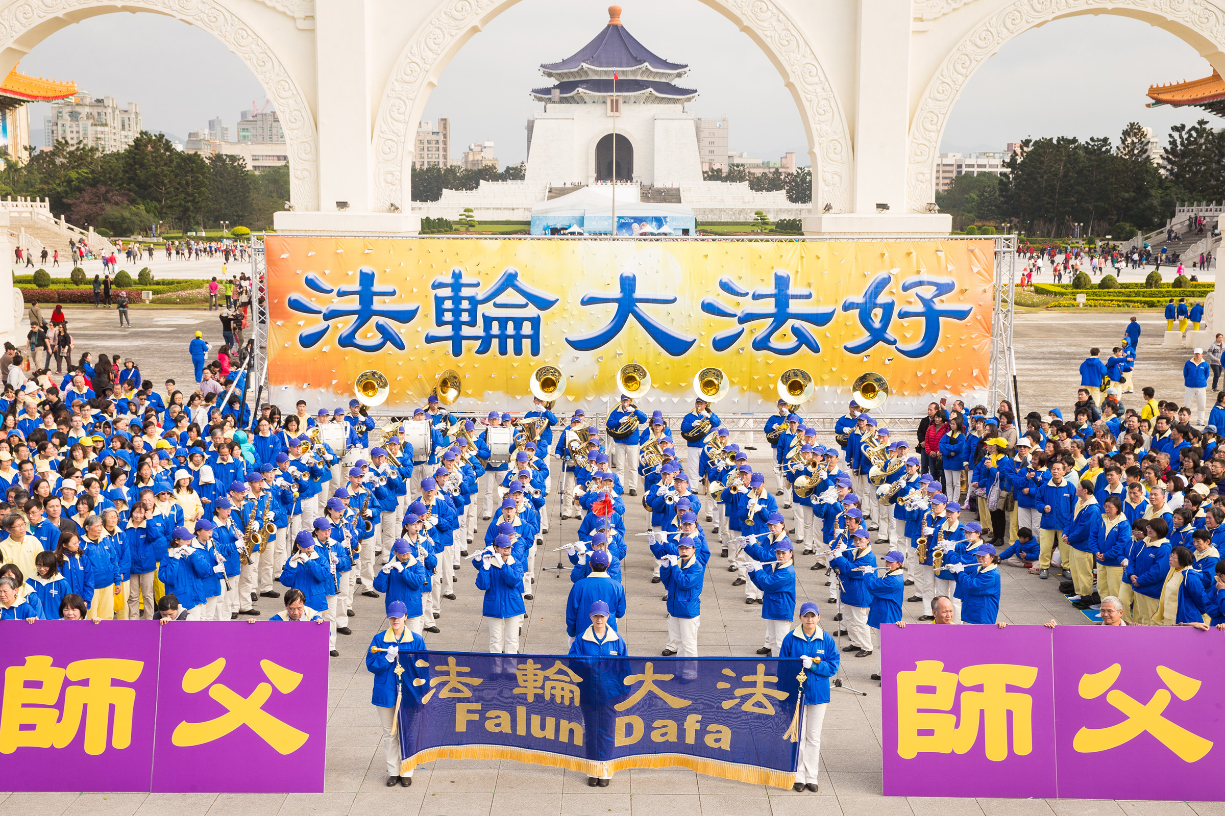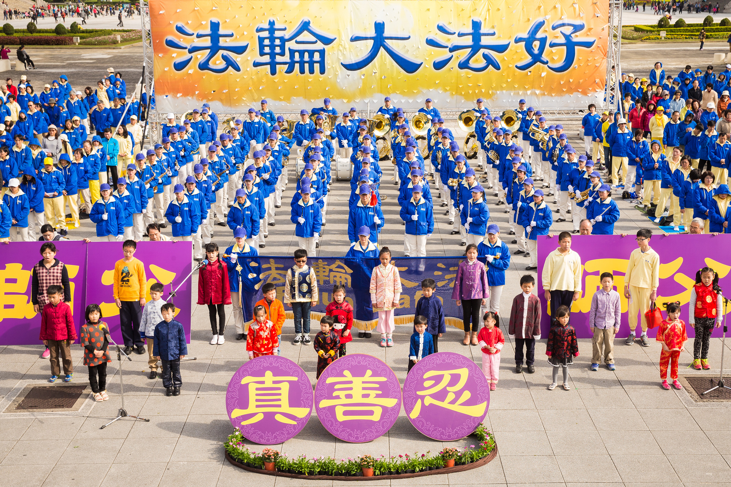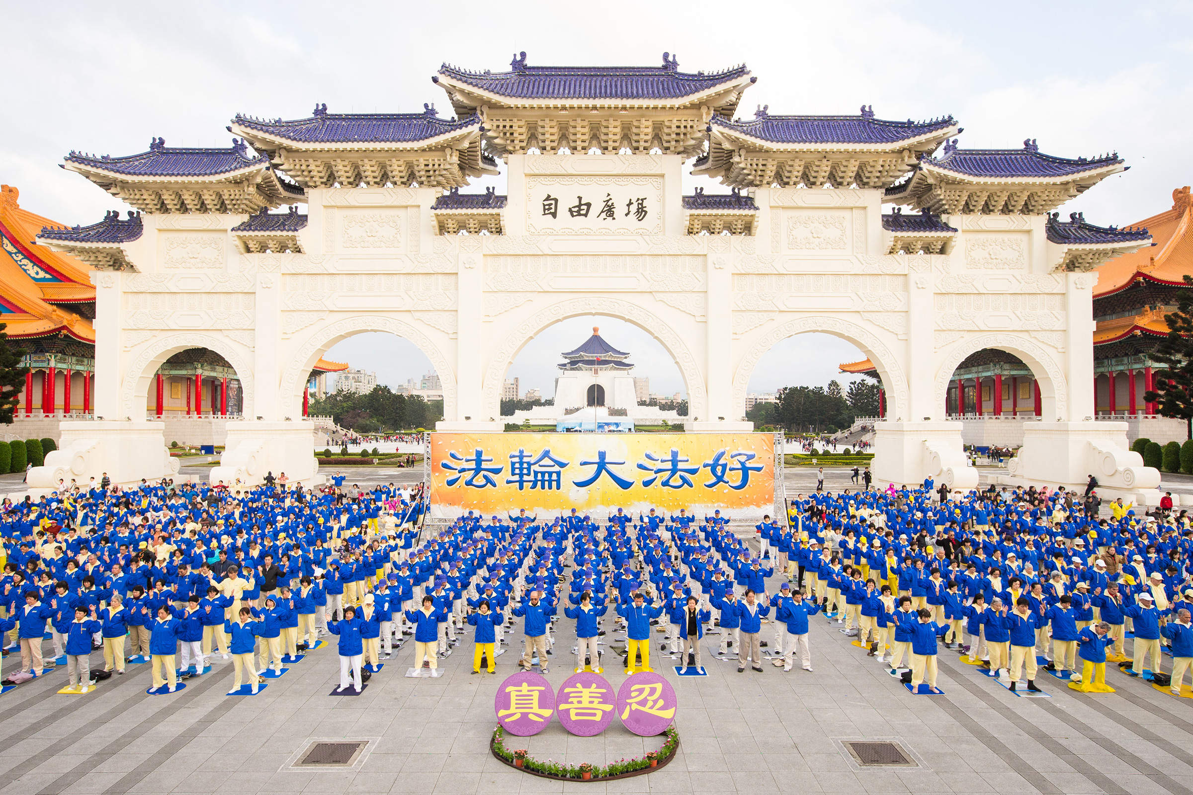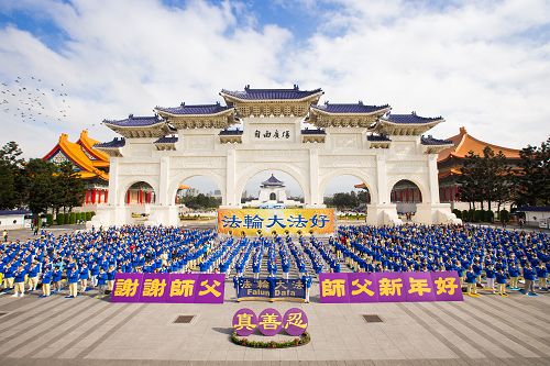 ![]() 图1-4:台北部份法轮功学员于二零一六年一月三十一日,在中正纪念堂自由广场举办活动,并向法轮功创始人李洪志先生拜年。 |