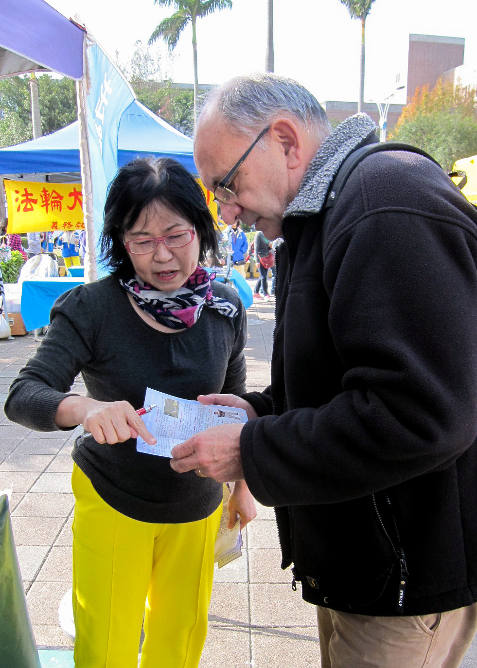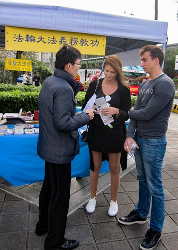 来自马来西亚的游客,和一位台北市民听到学员详尽介绍法轮功真相,不断向学员致谢,并表示会把今天所见所闻带回去告知周遭的亲友。
