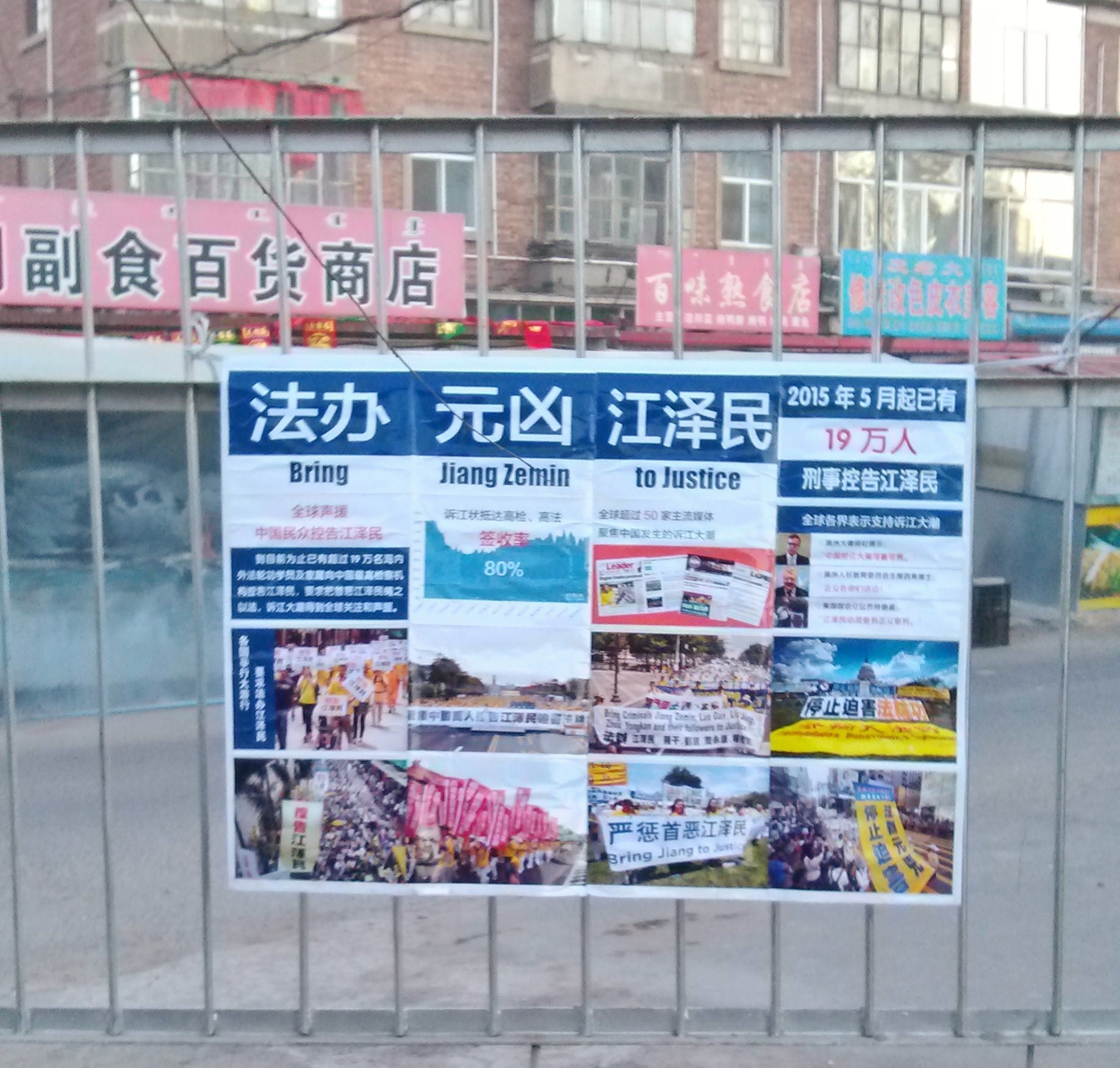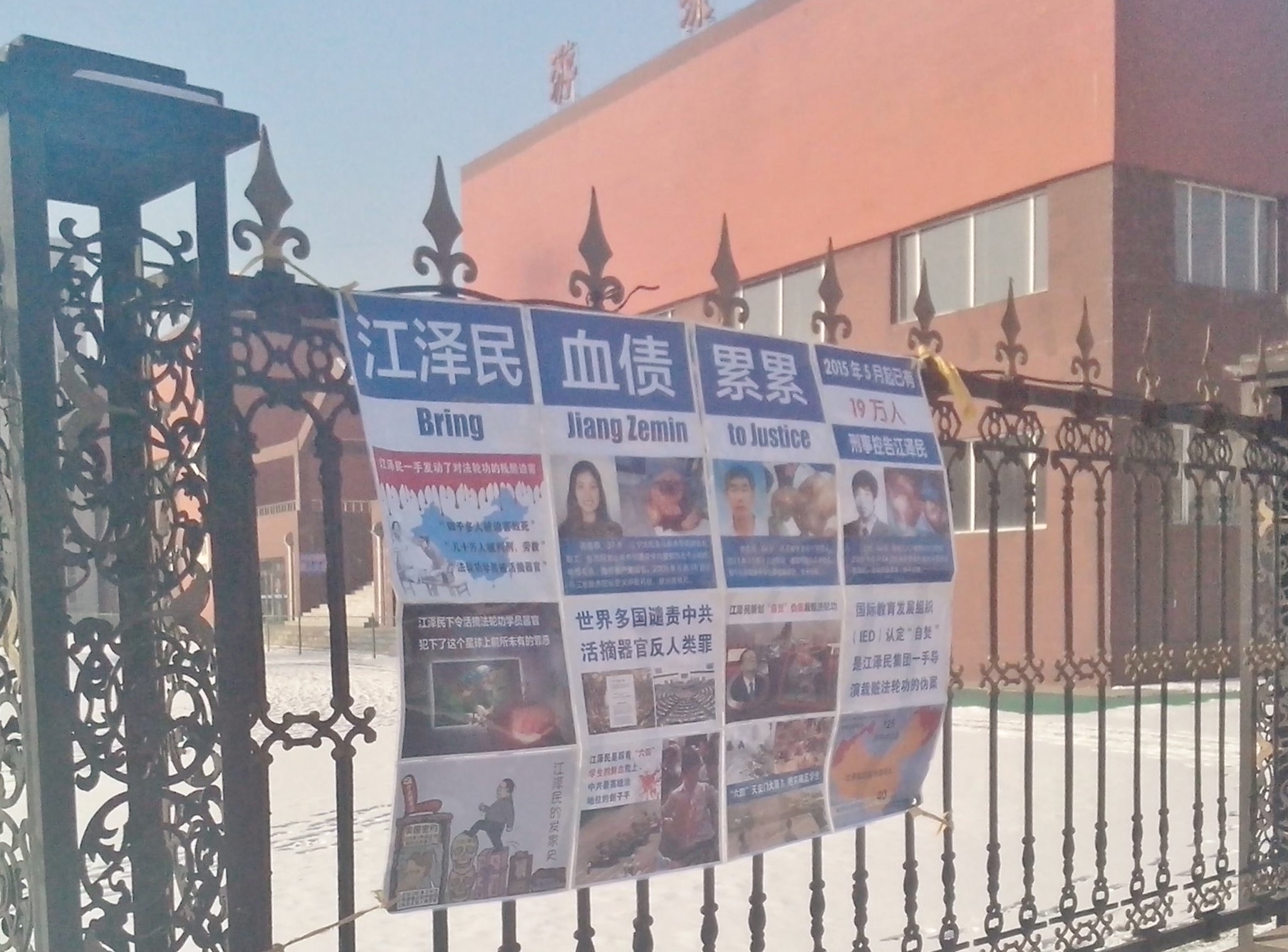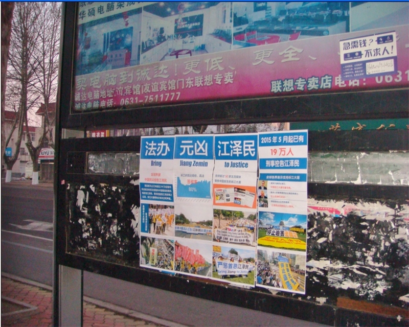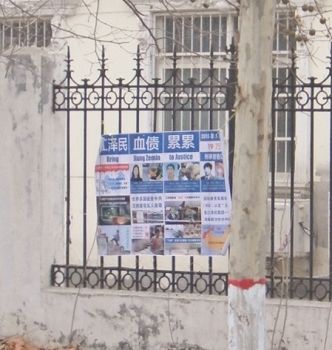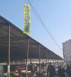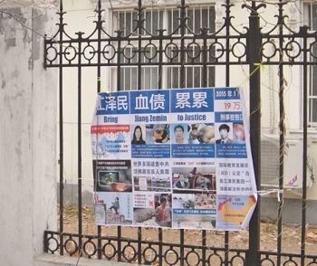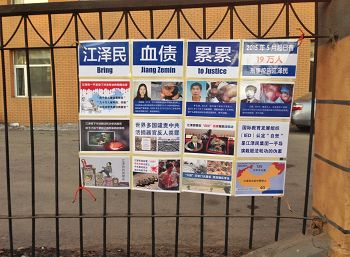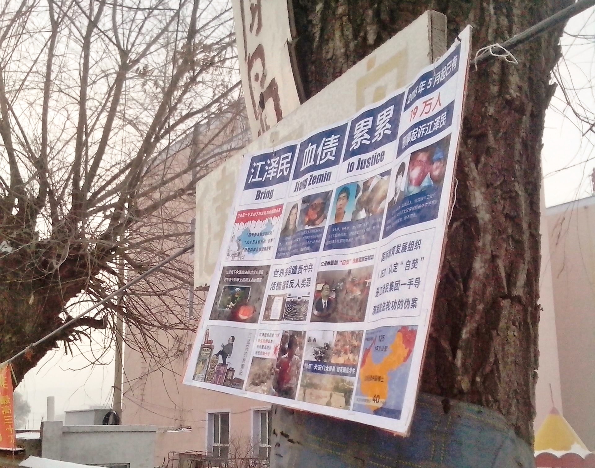 河北省衡水市过年时悬挂多日的诉江展板与真相挂件