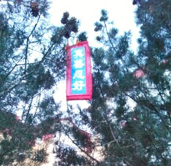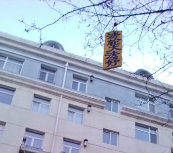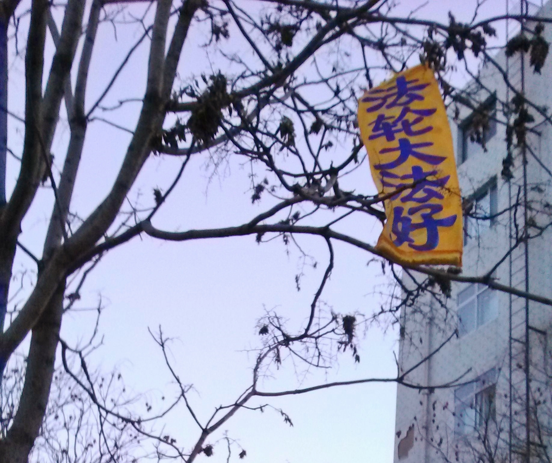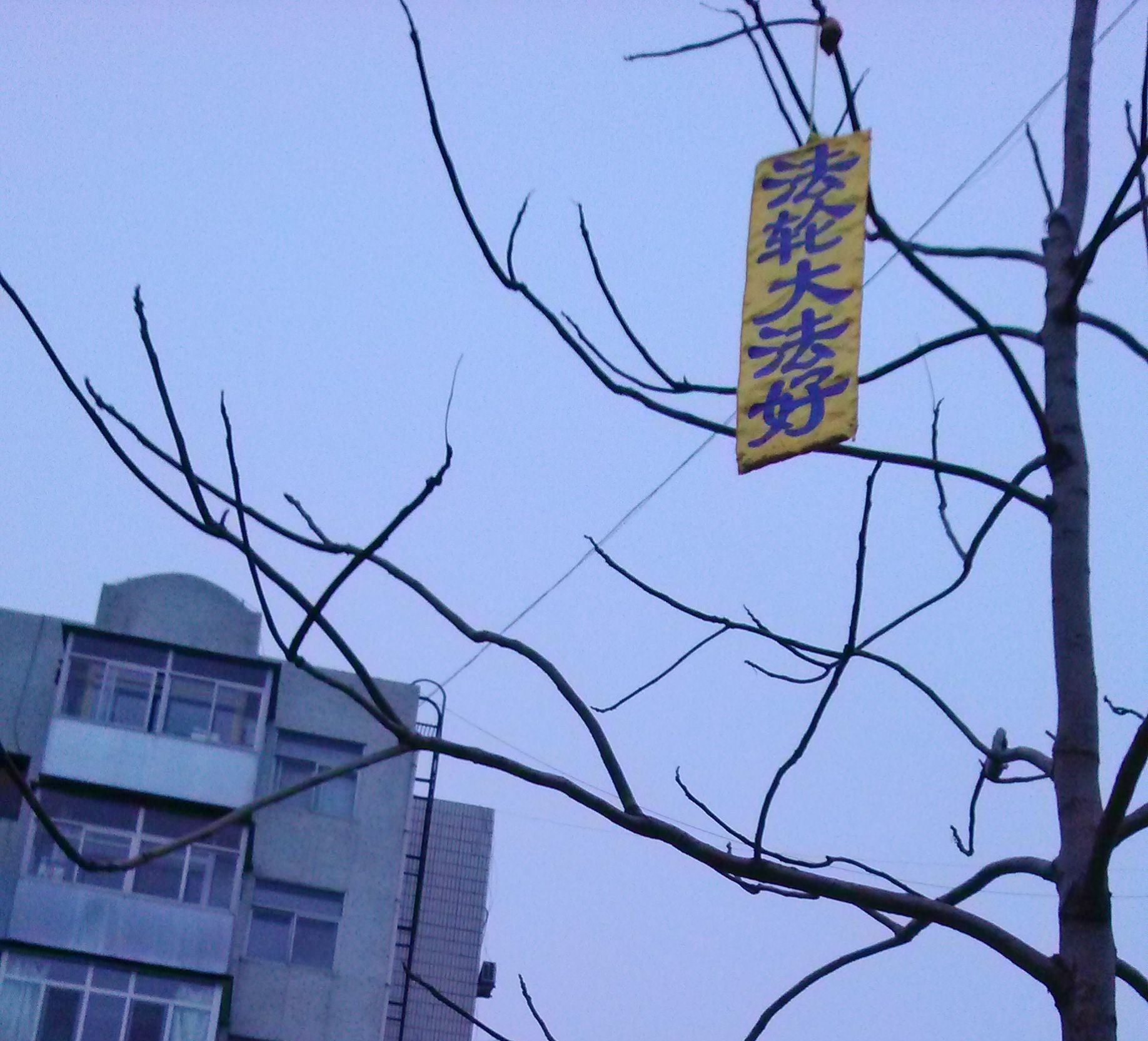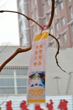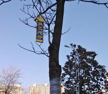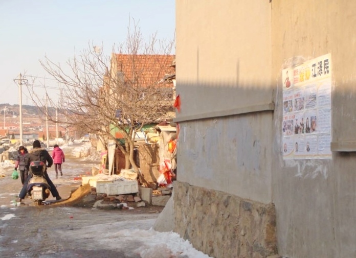 辽宁某地过年期间人们见到法轮功真相条幅