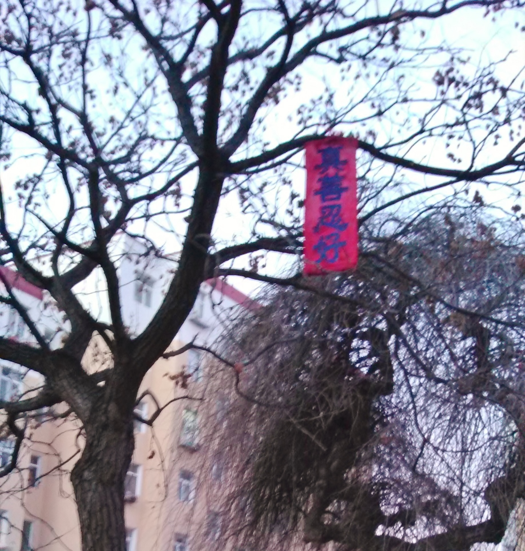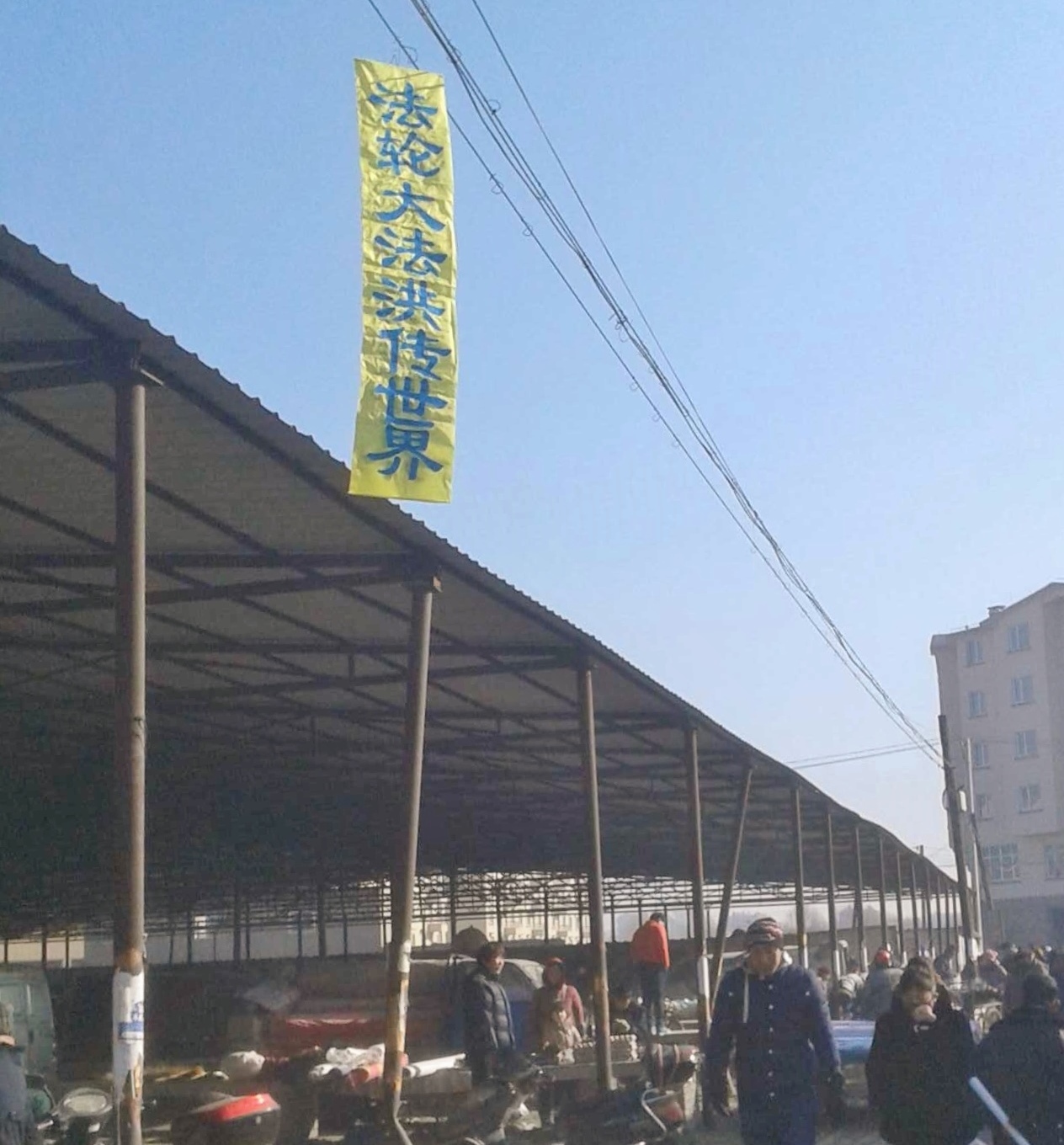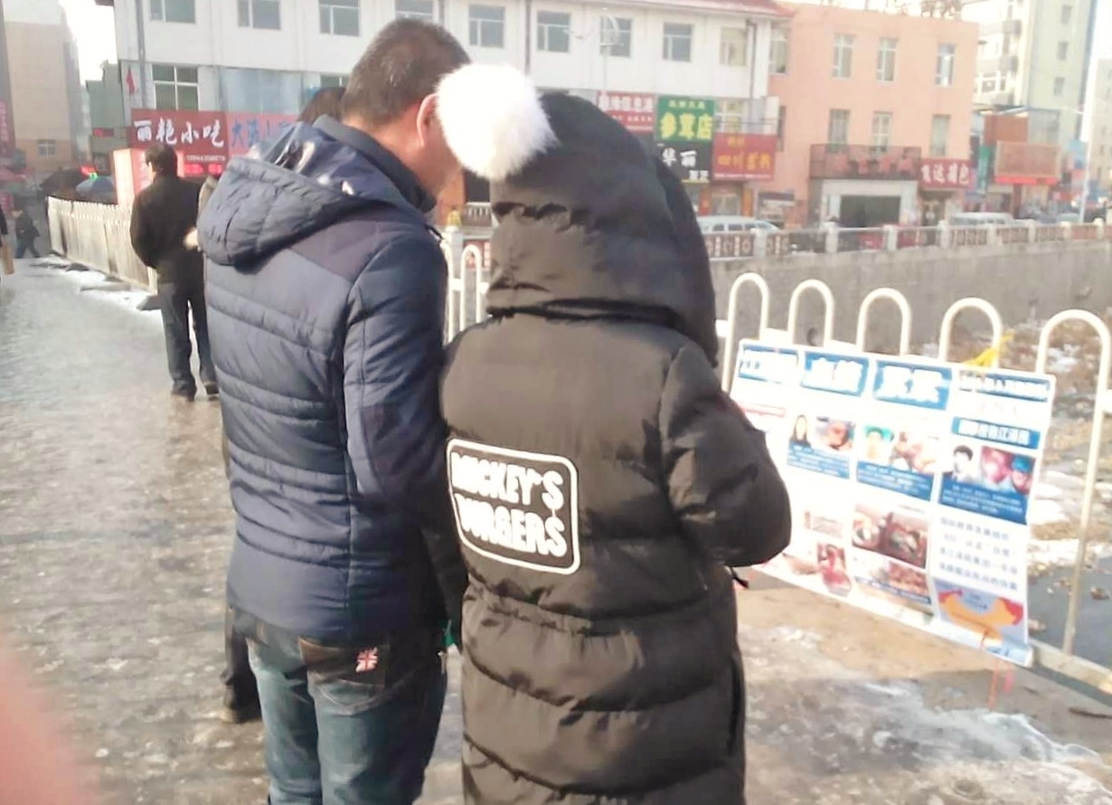 辽宁某地过年期间人们见到法轮功真相条幅