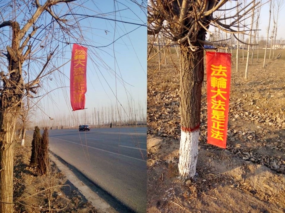 新年期间,河北省道两旁真相条幅阳光下鲜艳亮丽