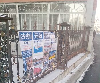 过年期间内蒙古某地街头出现的大法好真相条幅和诉江展板