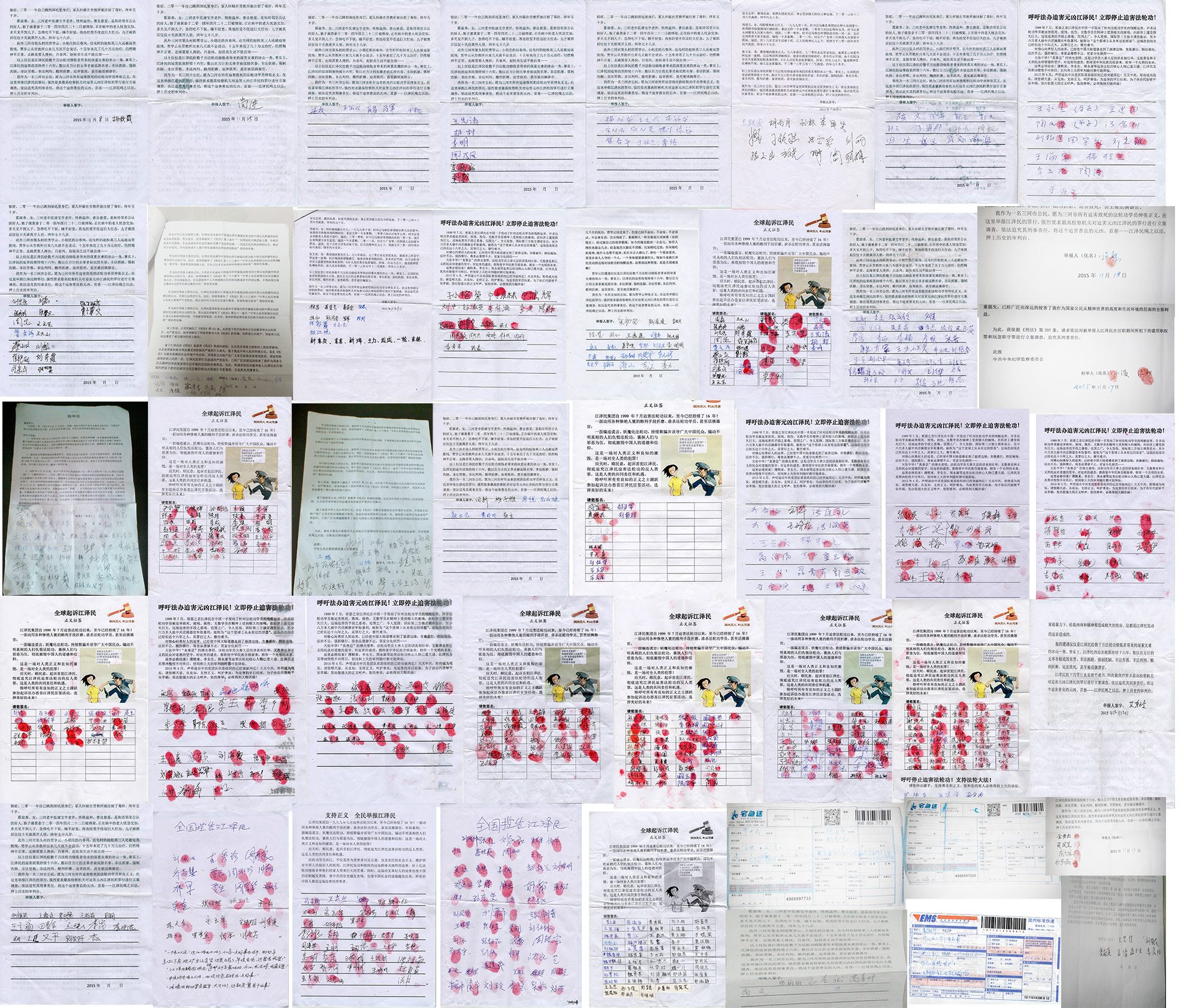 举报信多种格式,举报民众上至七、八十岁的老人,下至上小学的孩童,各年龄段、各阶层的都有,同时也有法轮功学员亲朋好友举报江泽民的罪行,举报信有的已经寄达高检。
