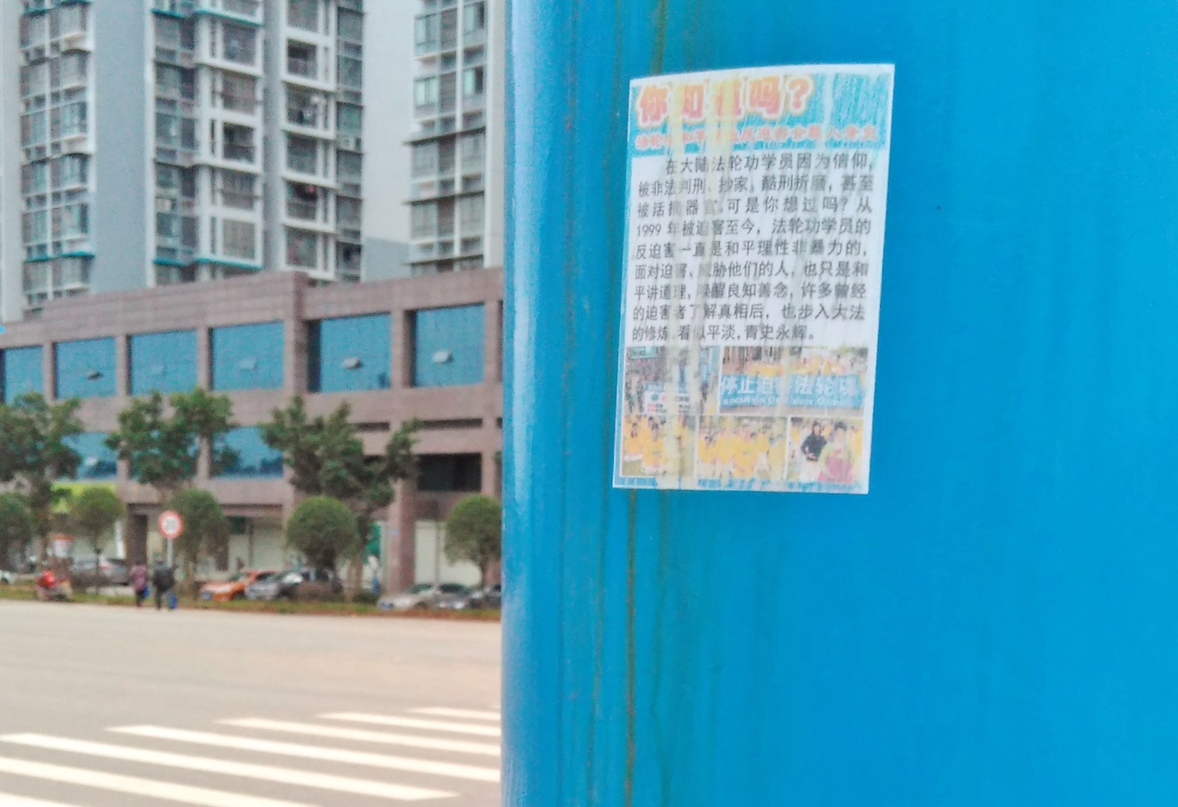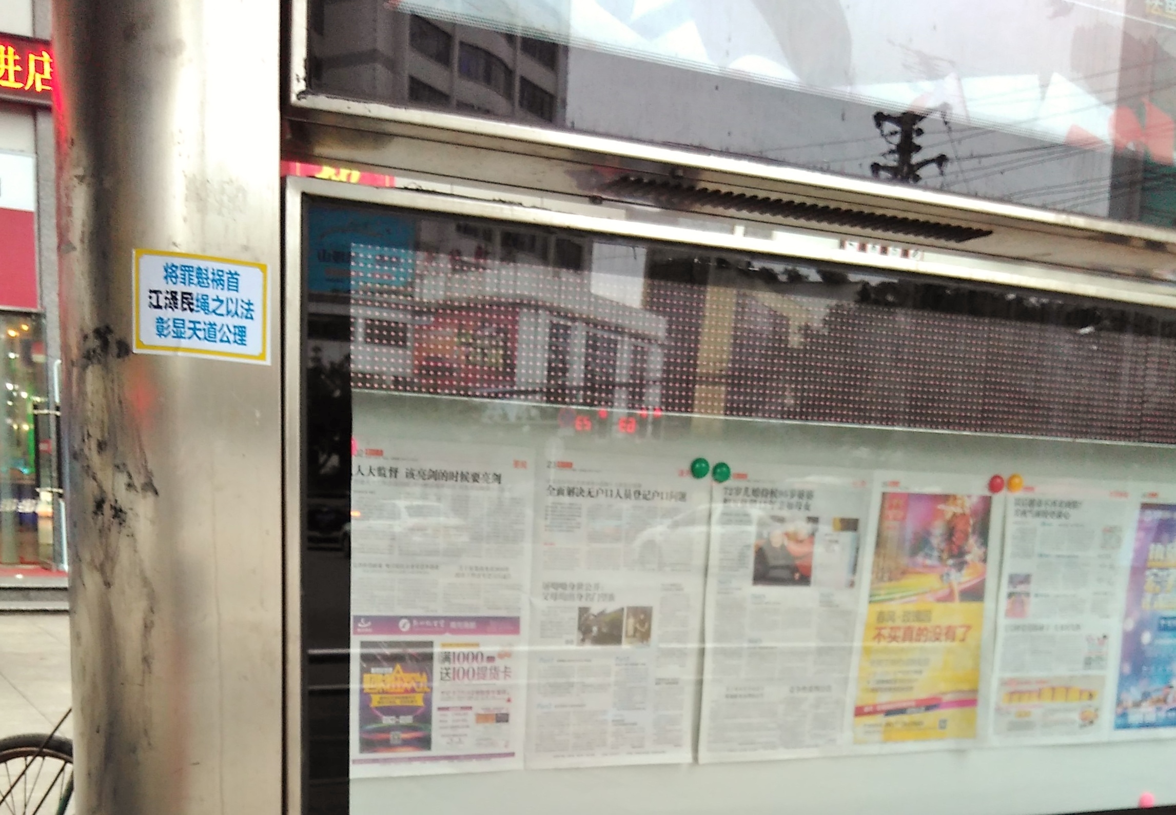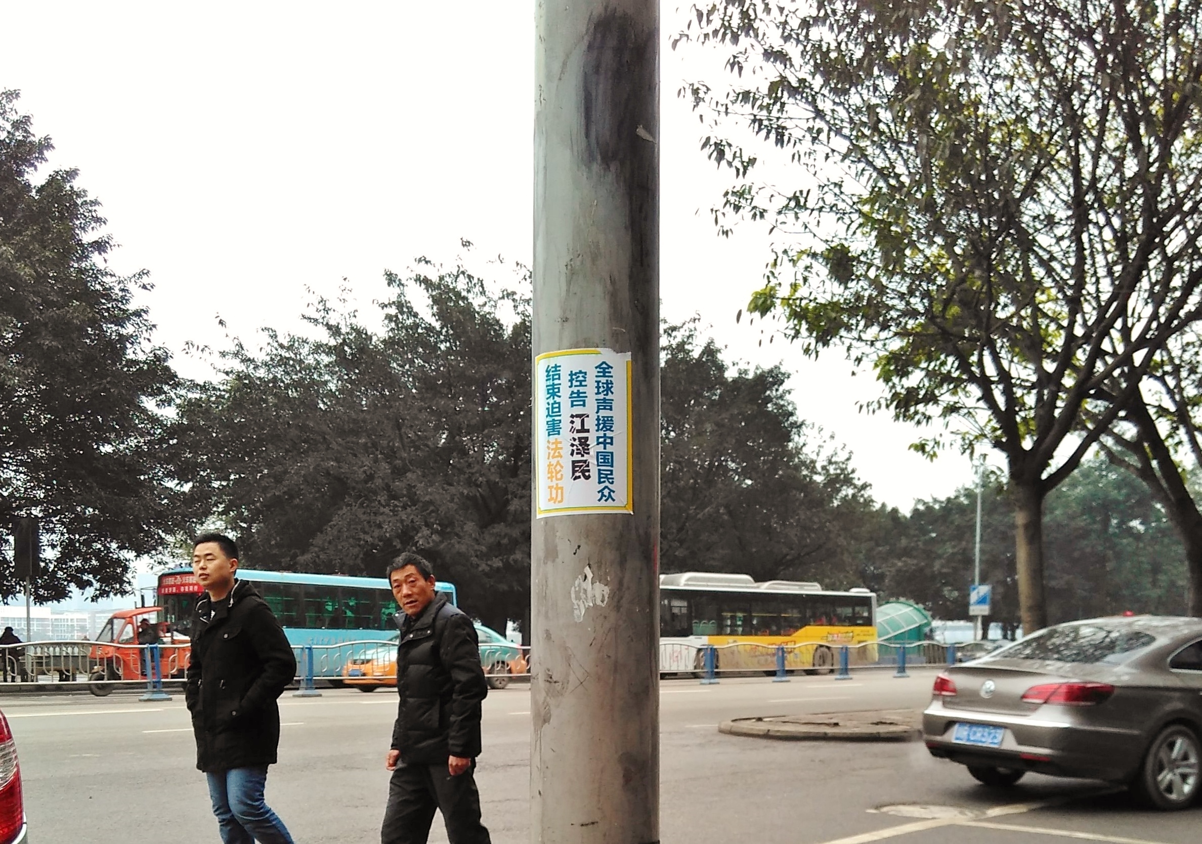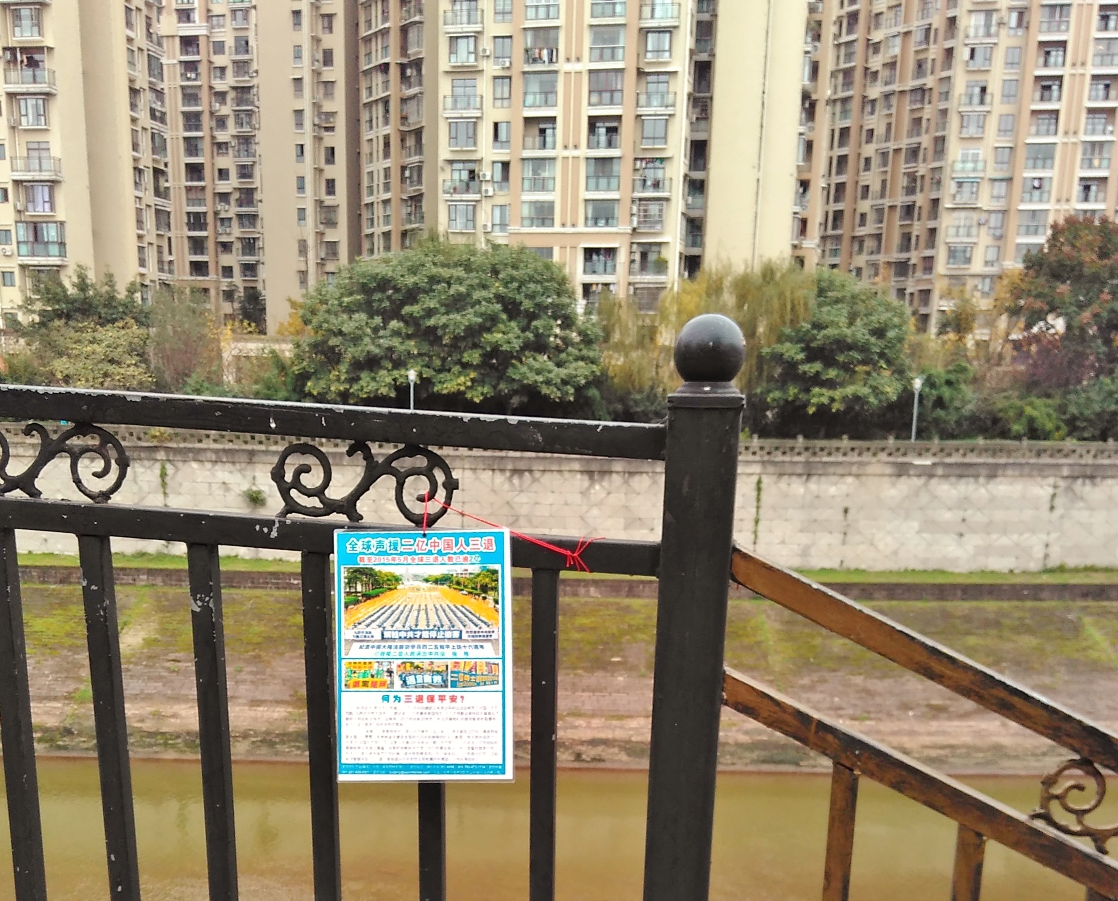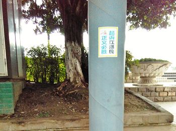 通讯员四川报道)在四川南充公园、市区、街道、公交站多处可见“法轮大法好”、“起诉江泽民”等真相标语、粘帖。