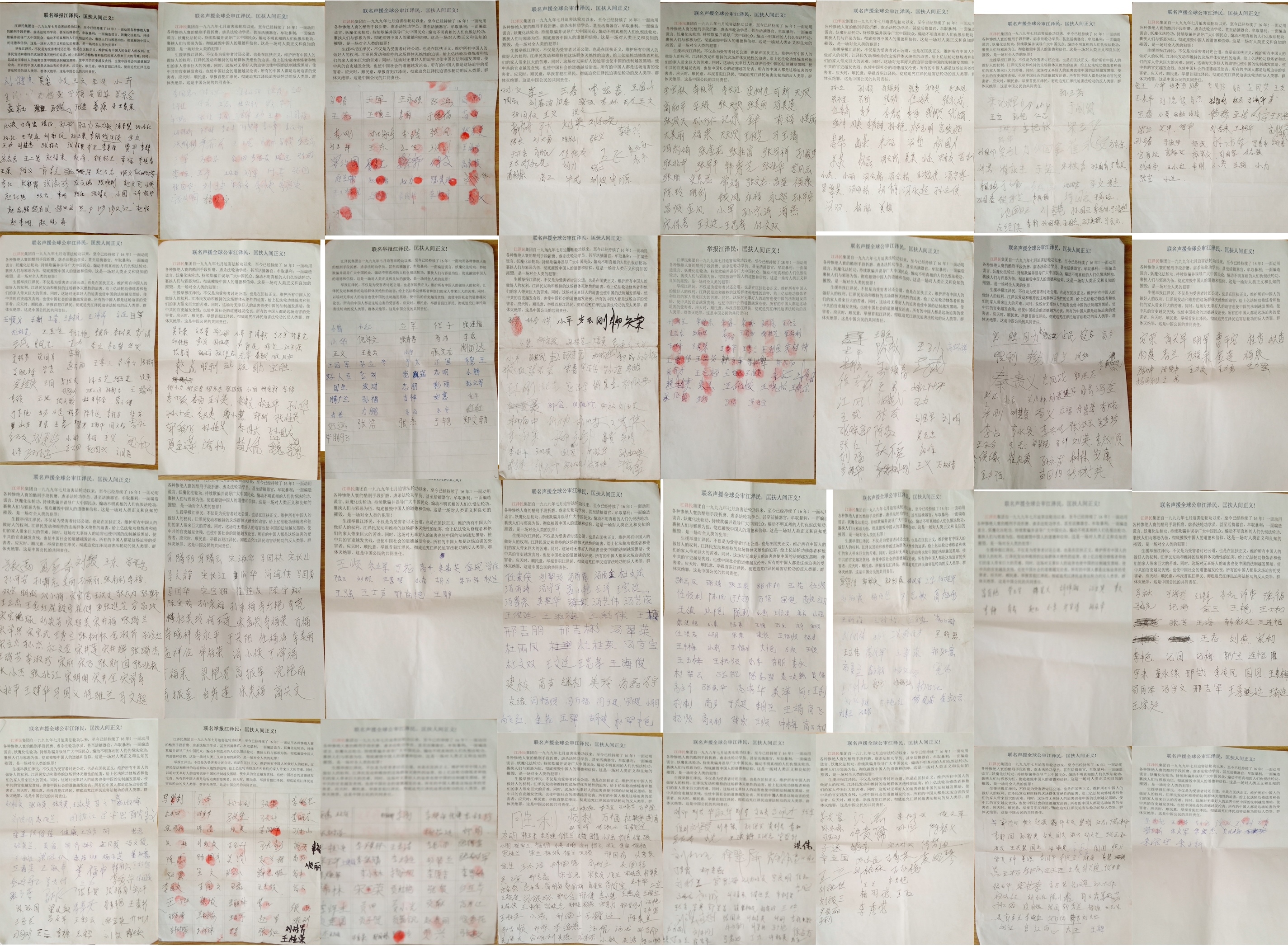 有一人签完自己的名字后说:我的媳妇和女儿我都给签上,不能落下他们,他们都同意的。