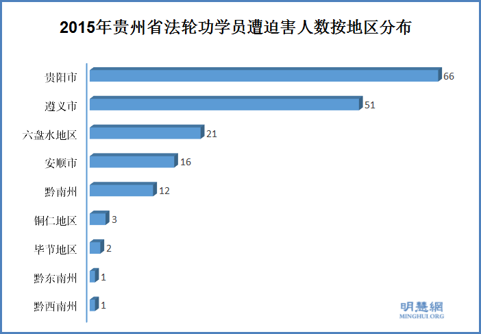 ![]() 图2:2015年贵州法轮功学员遭迫害人数按地区分布 |