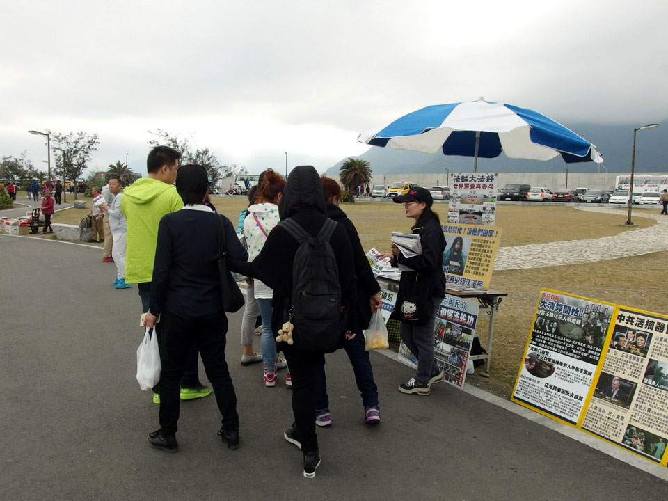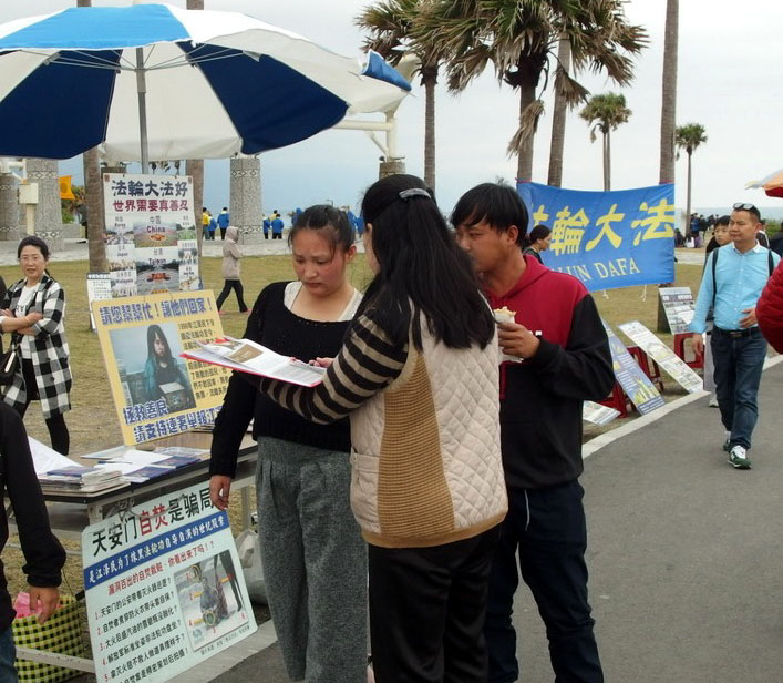 二零一六年二月二十八日台湾花莲法轮功学员在七星潭海边举办炼功活动,向中国大陆客讲真相、劝三:退.;并声援全球诉江大潮,征集签名、共同举报迫害法轮功的元凶江泽民。花莲法轮功学员利用假日的时间向过往的游客讲真相,中国游客有的主动拿真相资料,有的驻足观看真相看板,有的明白真相后,当场三:退.,声明退出中国共产党、共青团、少先队。