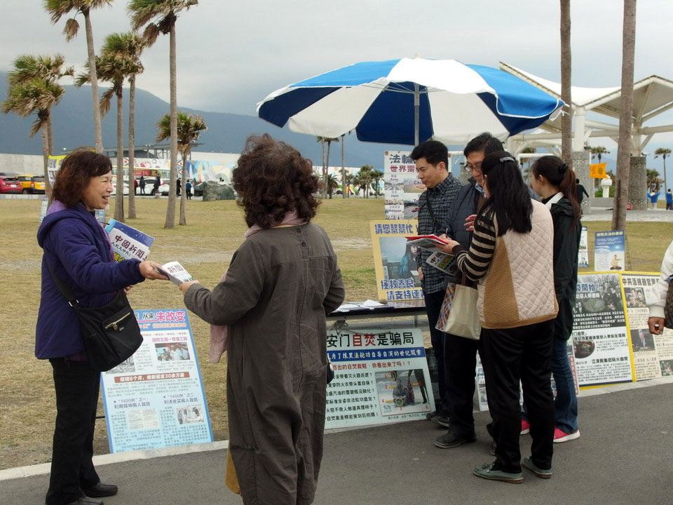 随着全球法轮功学员努力不懈地讲真相,愈来愈多的世人明白真相,花莲法轮功学员也向过往的游客征集签名、共同举报江泽民,希望将迫害法轮功的元凶江泽民绳之以法,共同制止这场非法的迫害,早日在中国大陆再看到法轮功学员集体炼功的画面。