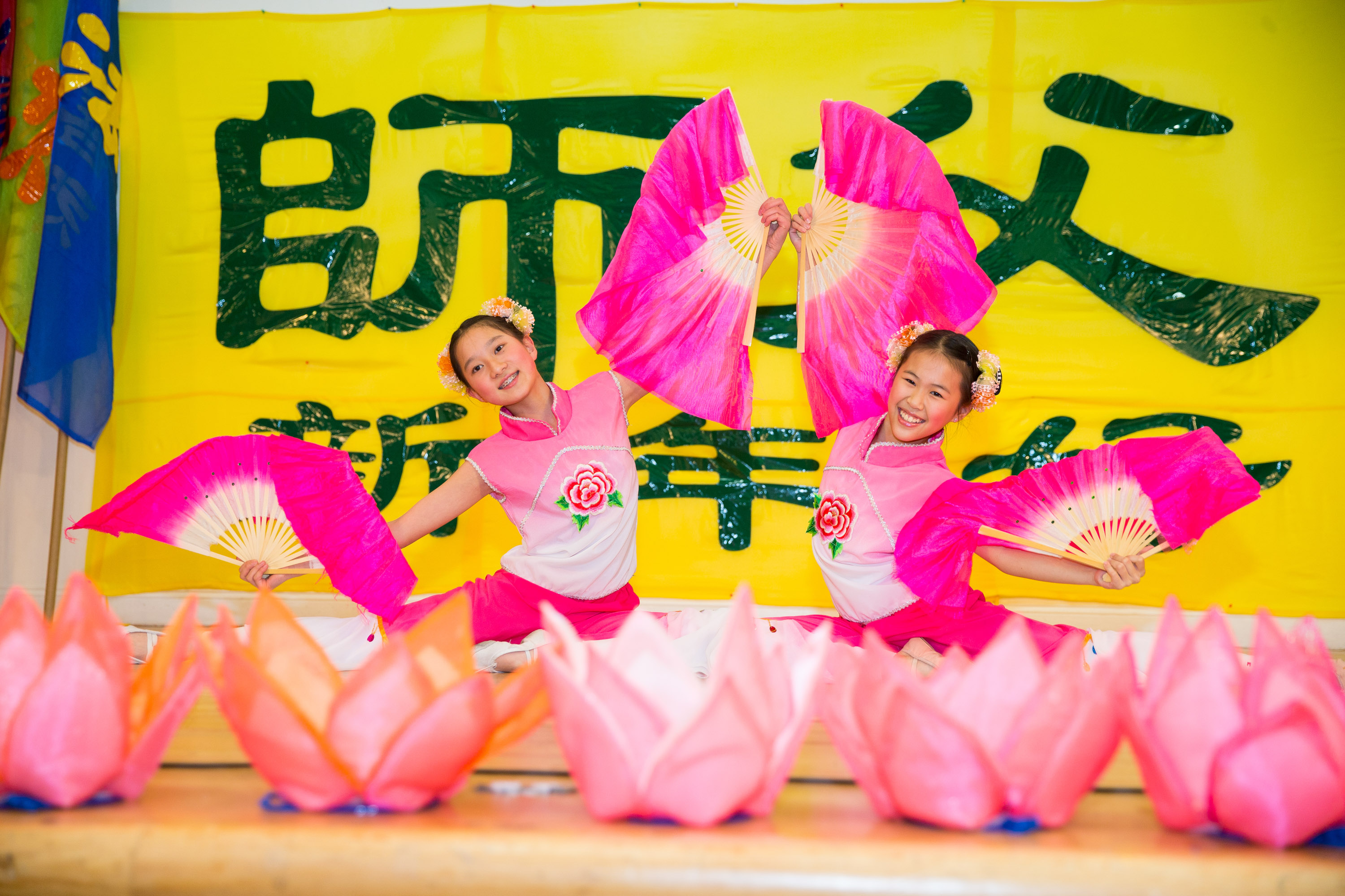 十一位大法小弟子也带来合唱《大法小弟子》,他们中年龄最小的只有两岁左右,孩子们对大法纯真的心和憨厚可爱的表情引来全场笑声阵阵。最后,退!党!义工和全体法轮功学员大合唱《法轮大法好》,把气氛推向最高潮。