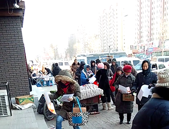 发放年画现场十分壮观,大法弟子有发年画的,有发正念的,有大法弟子拿配套福字的,在整体配合下,每次民众特别多。有一次警察亲眼看到了大法弟子堂堂正正的救度世人,也被众生在欢呼雀跃中争抢大法真相年画的场面所震撼,有一位警察的同伴也领走了年画和福字一起离开了。有大法弟子在现场为两位警察做了三:退.,警察明真相后在感恩中领了年画和福字。