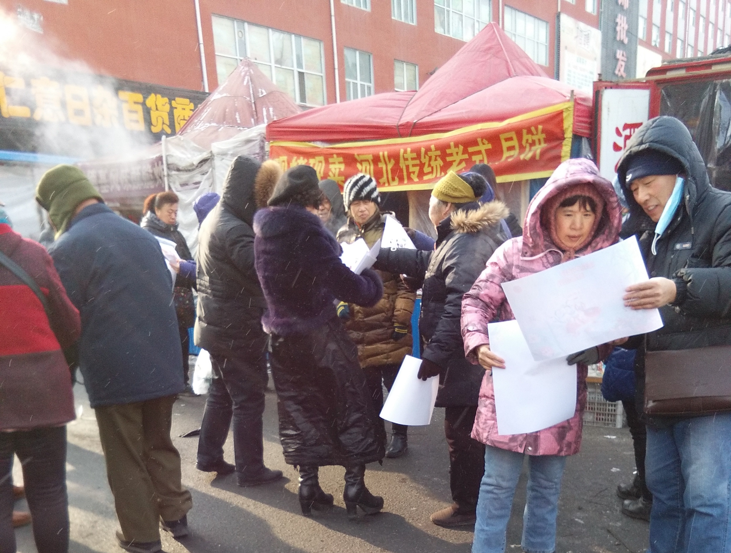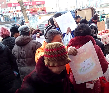 【明慧网二零一六年二月四日】随着师父正法進程的不断推進,世人明白的一面都在觉醒。长春市大法弟子每天在闹市区面对面发放法轮大法真相年画和配套真相福字真相——玻璃纸袋装上给有缘人的一封信、明慧期刊《三