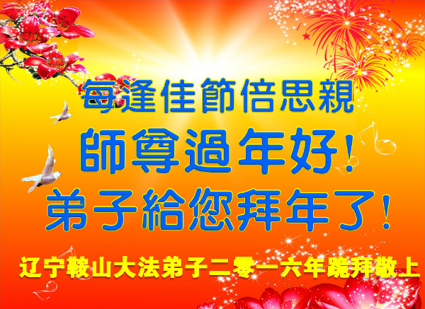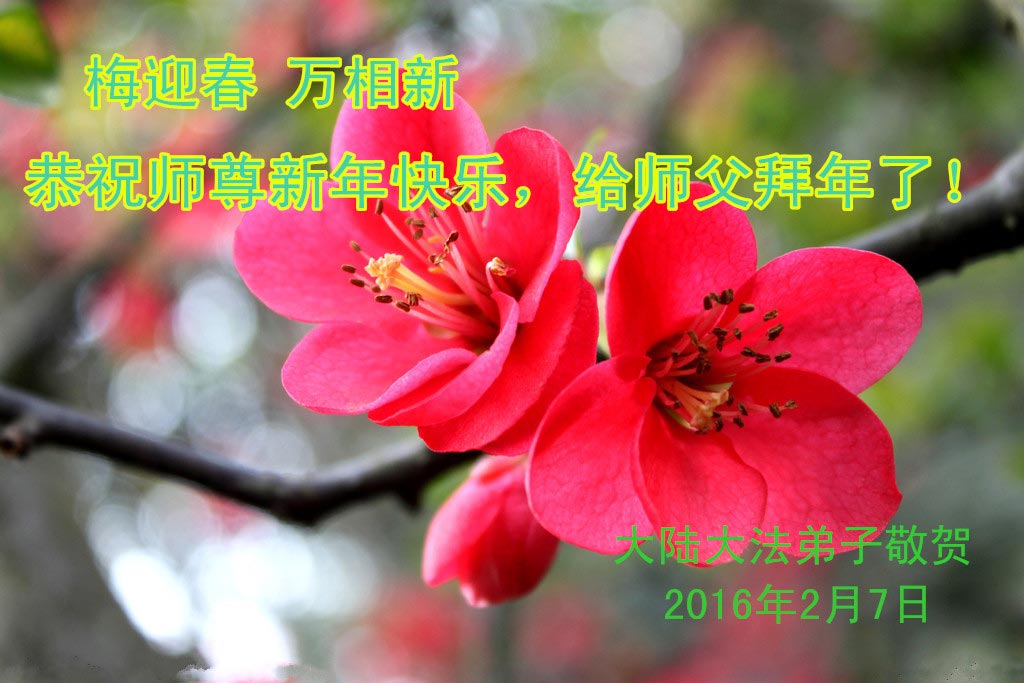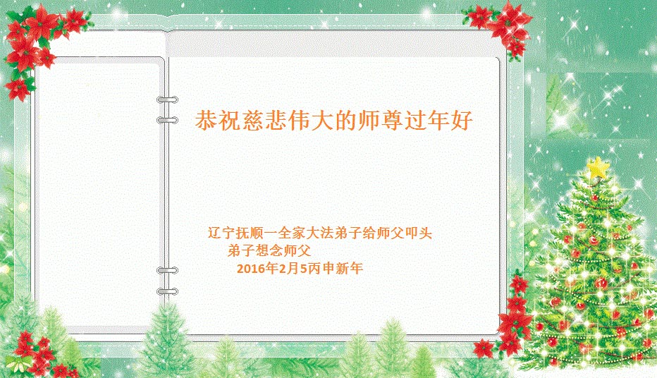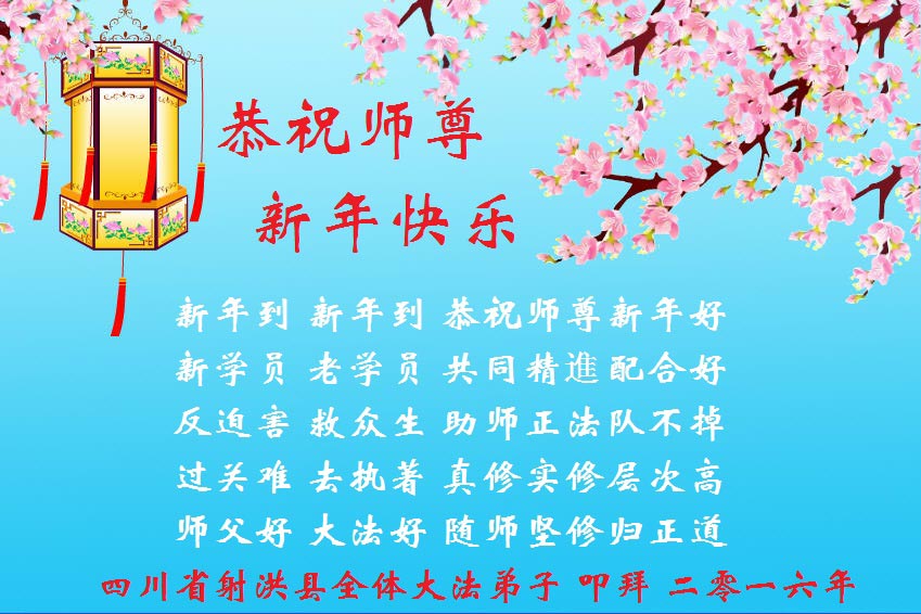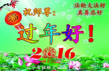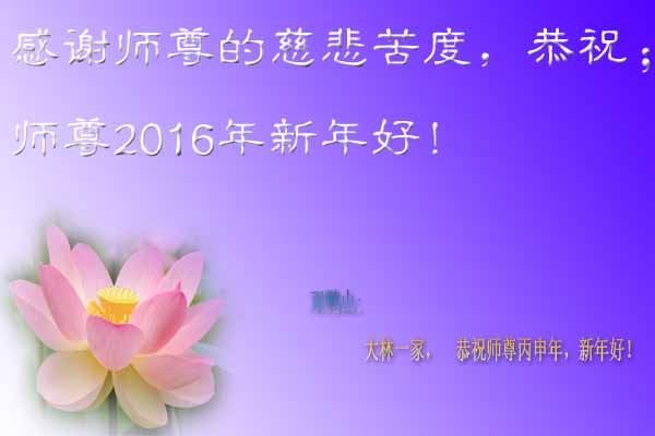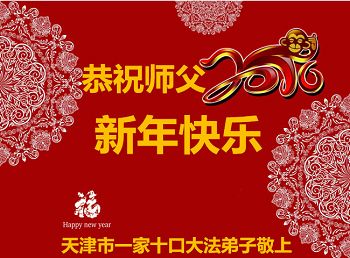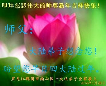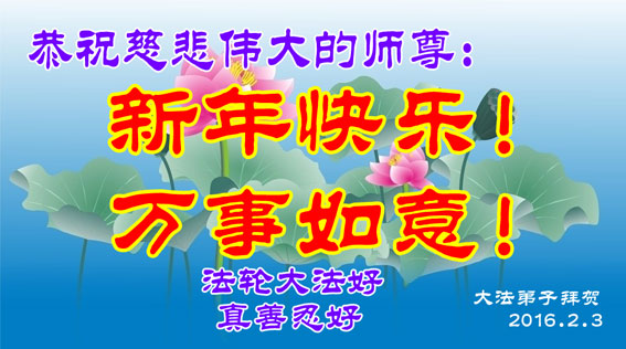 恭祝师父新年快乐谢谢师父救度之恩!早点解困难在中国和我们大家团圆相聚,大法弟子家属祝师父合家欢乐!恭祝师尊新年快乐!愿早日法正人间,救度世人。在2016年,大法弟子不再遭受迫害。