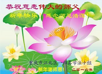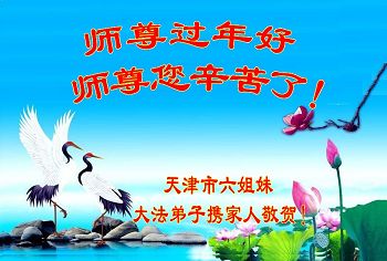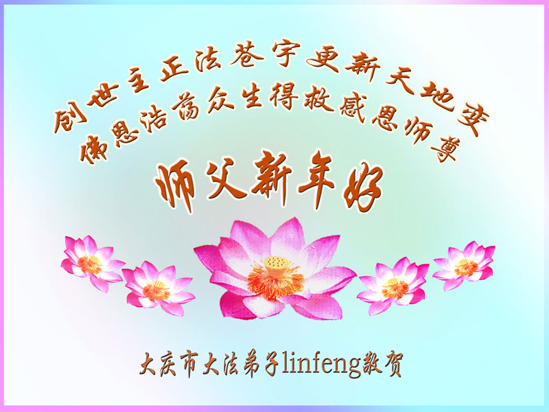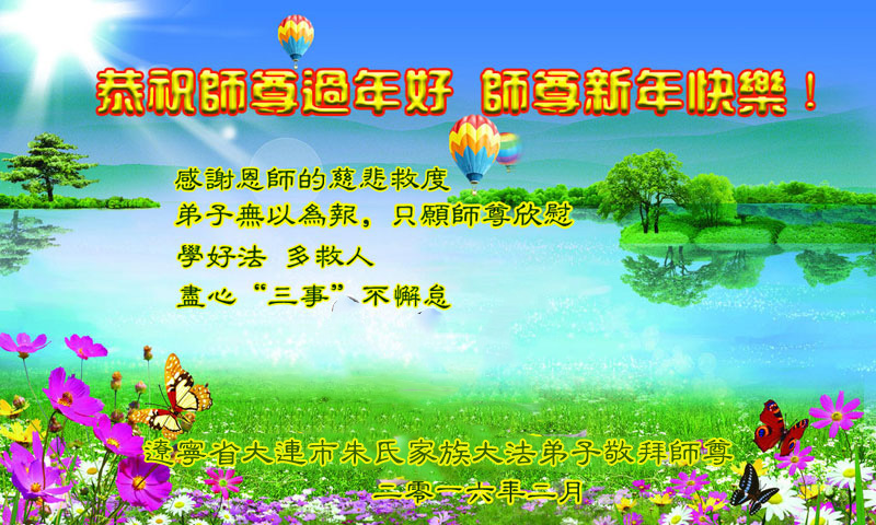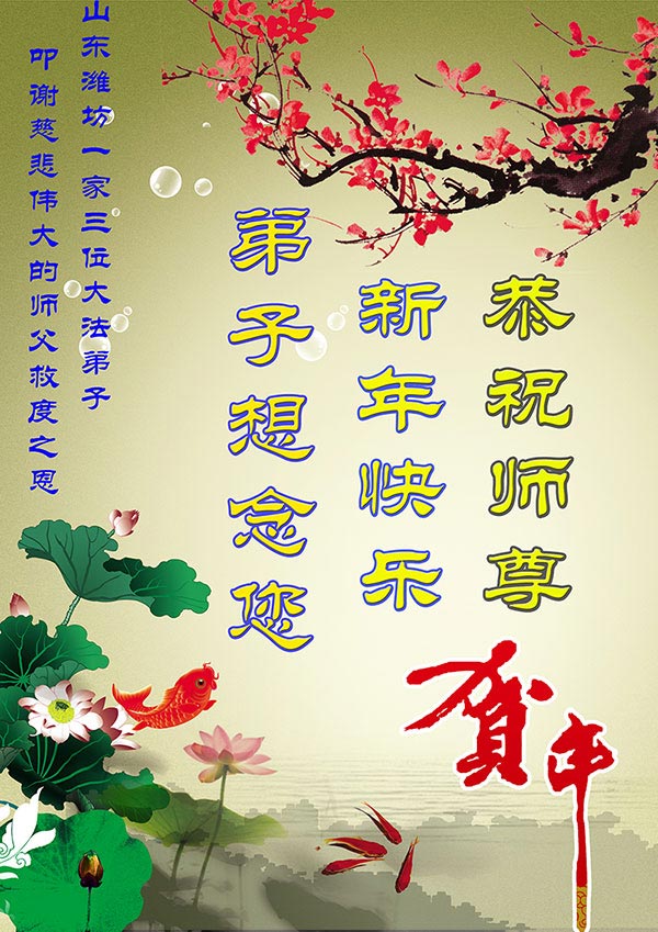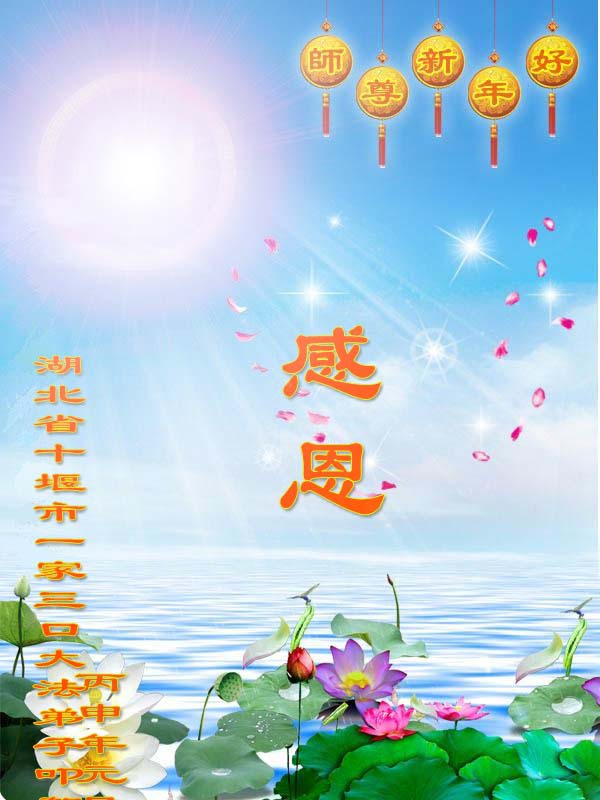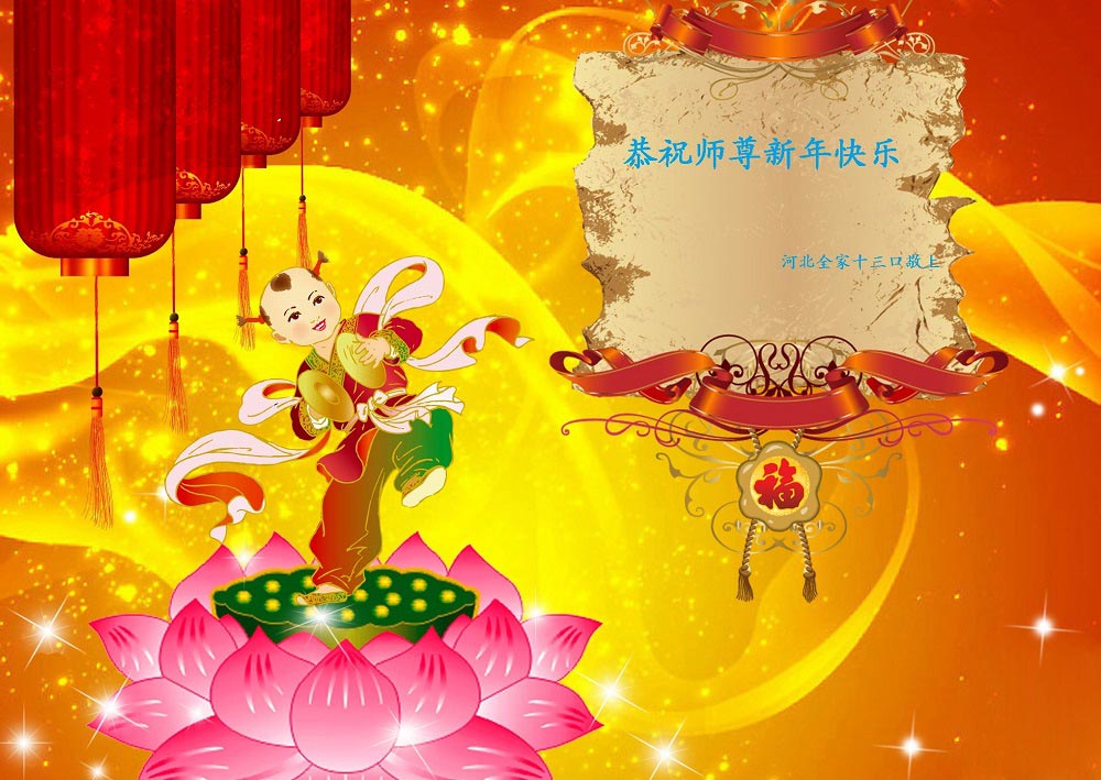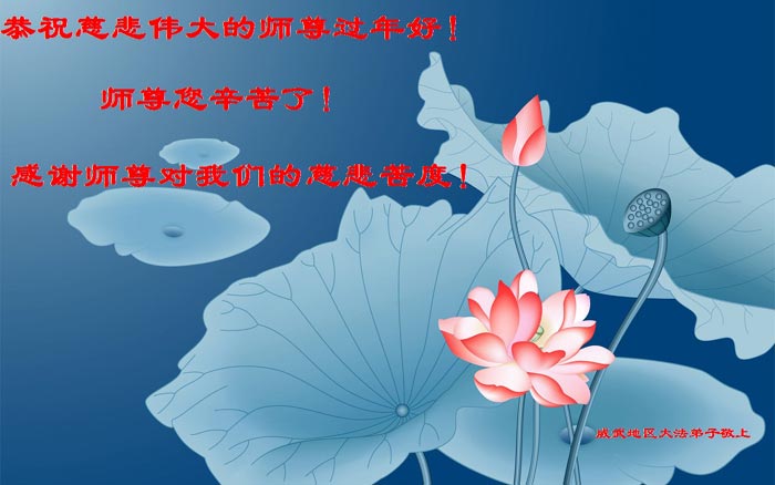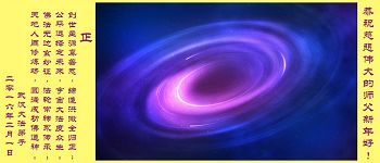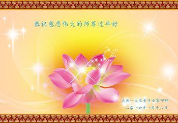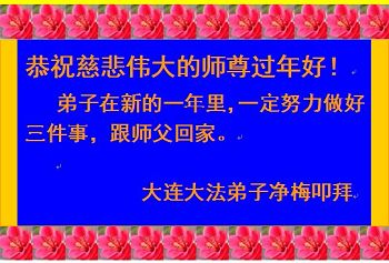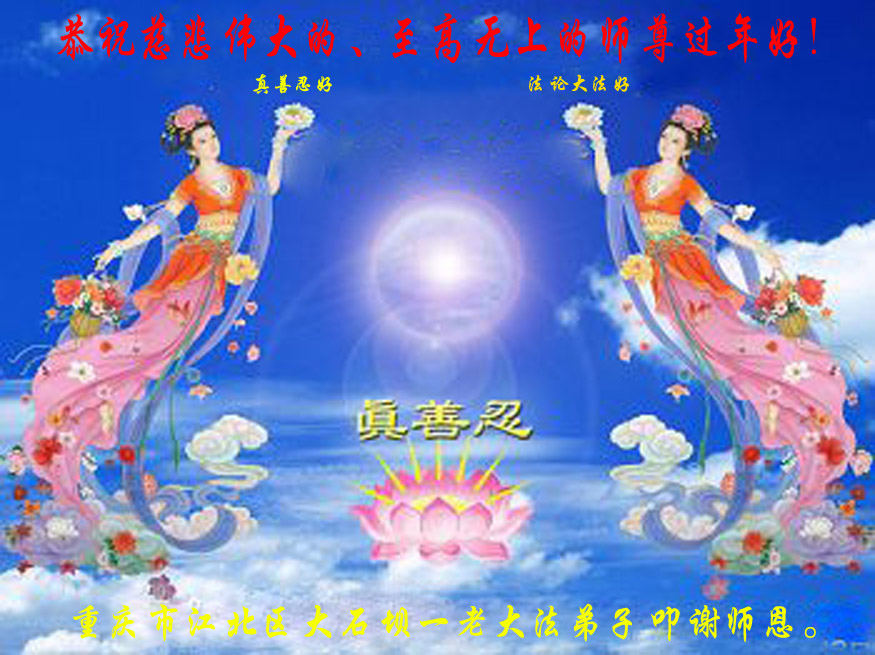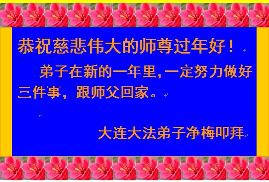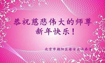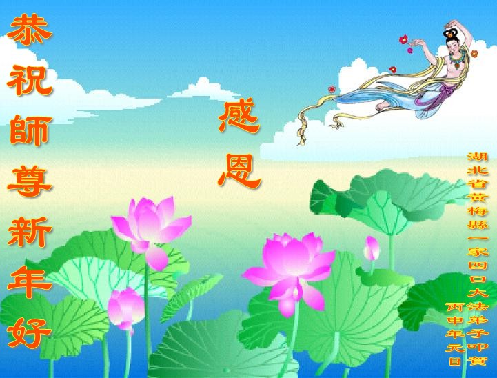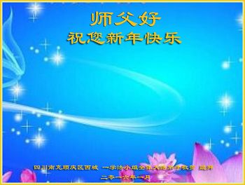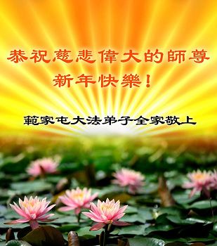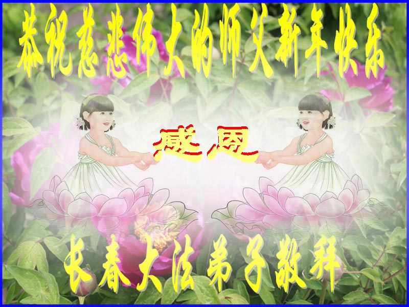 感谢李大师慈悲救度,恭祝您新年快乐!在新的一年里我们会努力按照“真善忍”去做一个好人。盼望您早日回国,我们都很想念您!