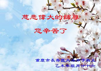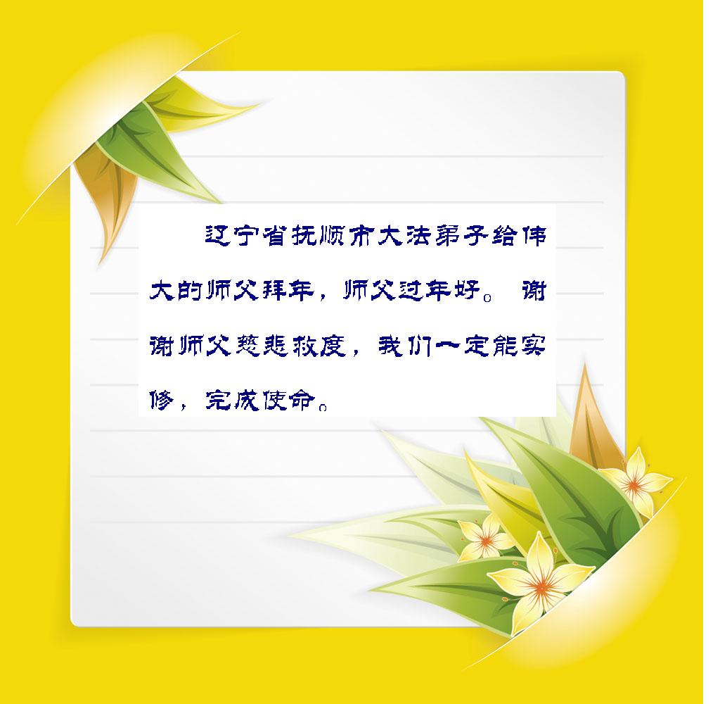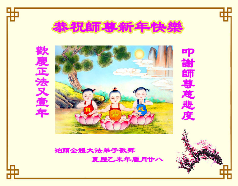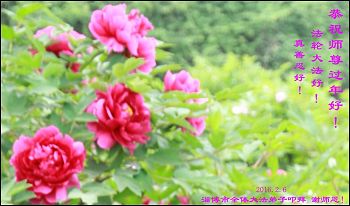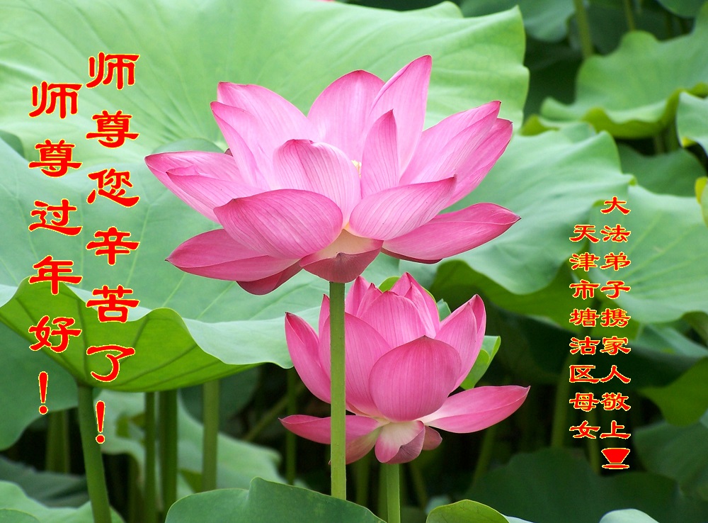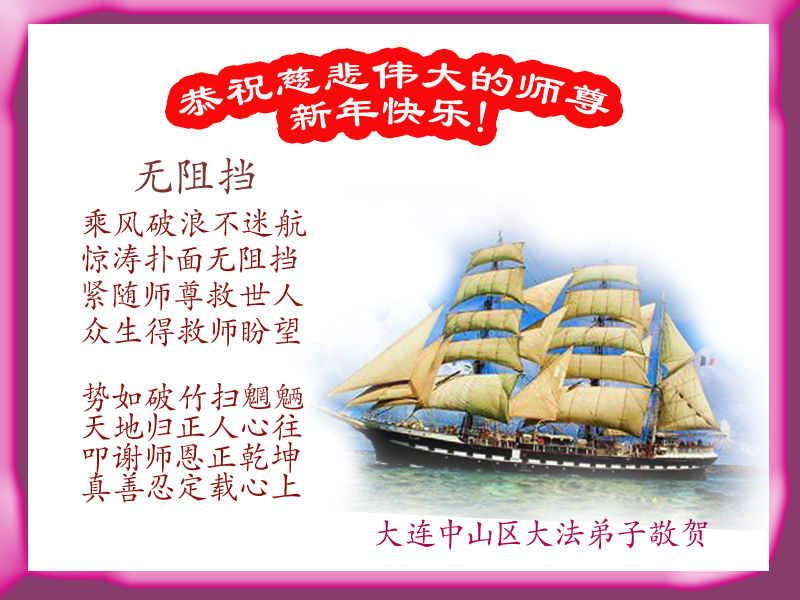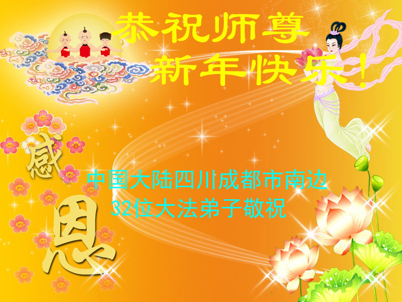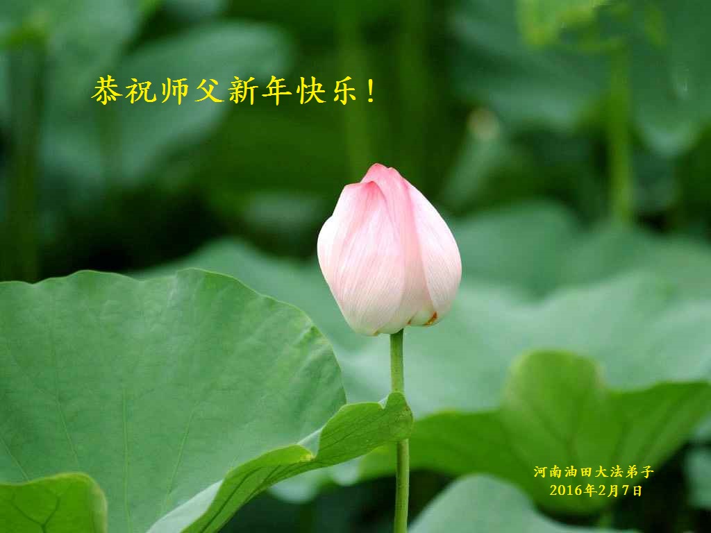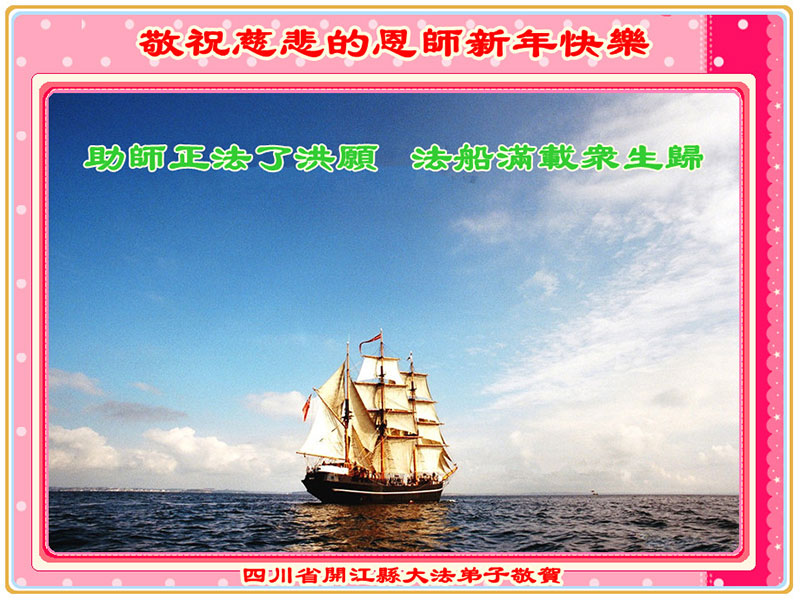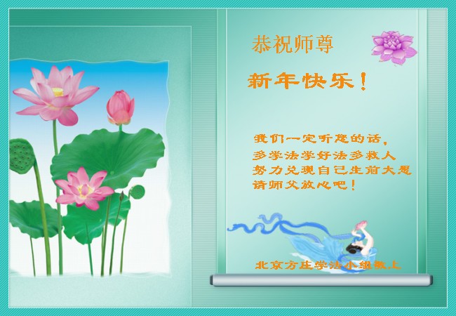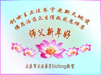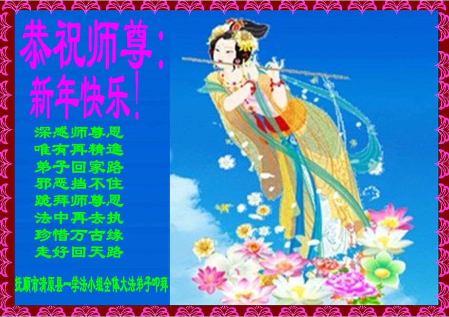 感谢李大师慈悲救度,恭祝您新年快乐!在新的一年里我们会努力按照“真善忍”去做一个好人。盼望您早日回国,我们都很想念您!