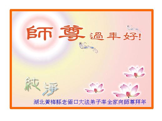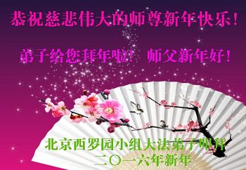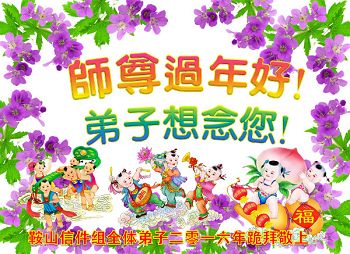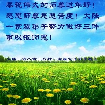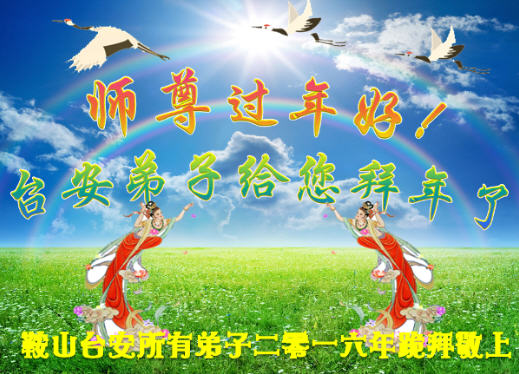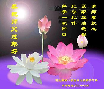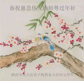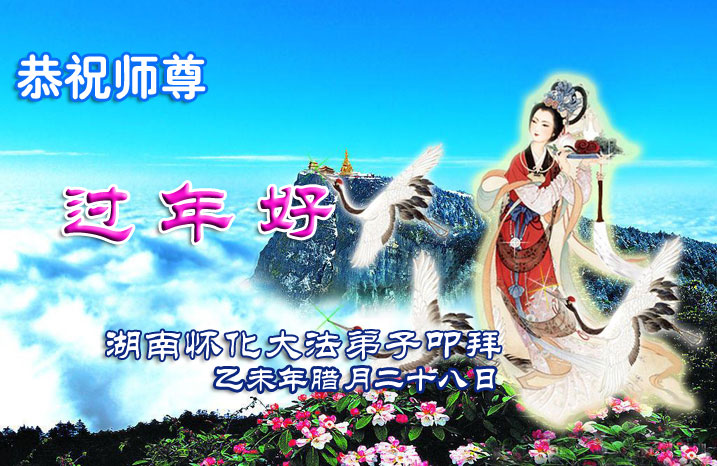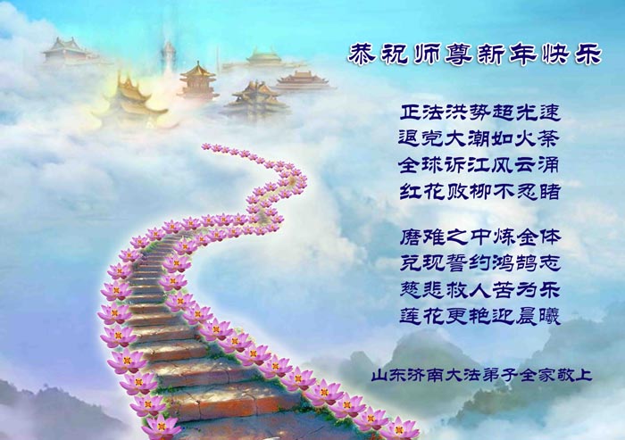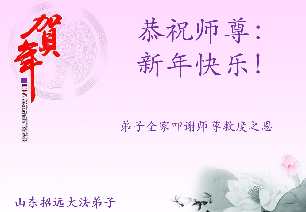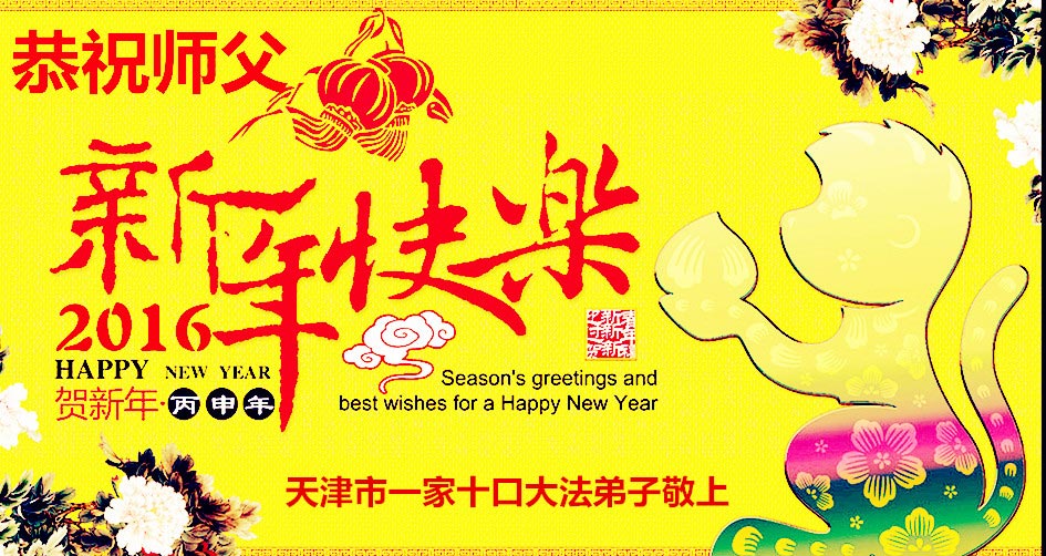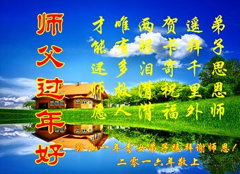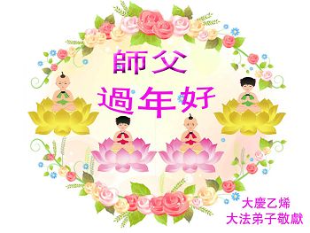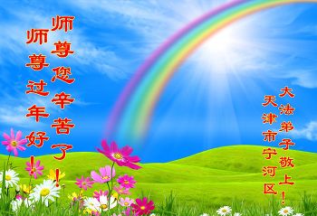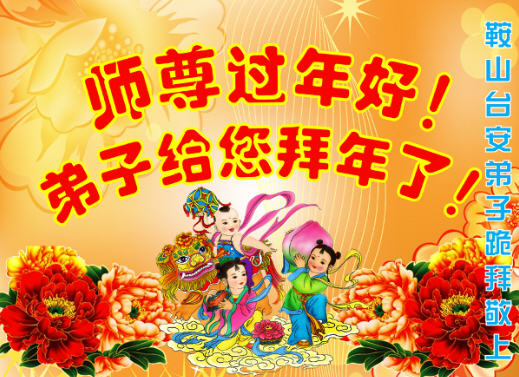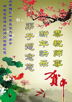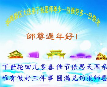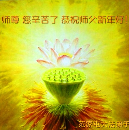 新年来到,弟子及明白真相的家人(妻子)给慈悲伟大的师尊拜年!师尊新年好!新年快乐!师尊您辛苦了!