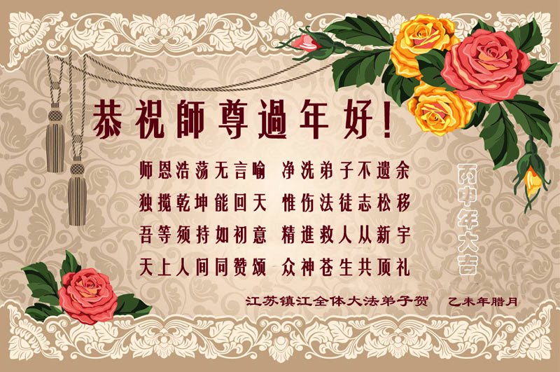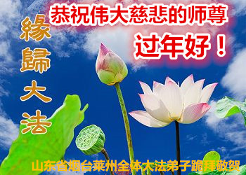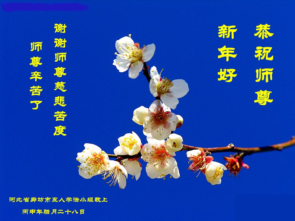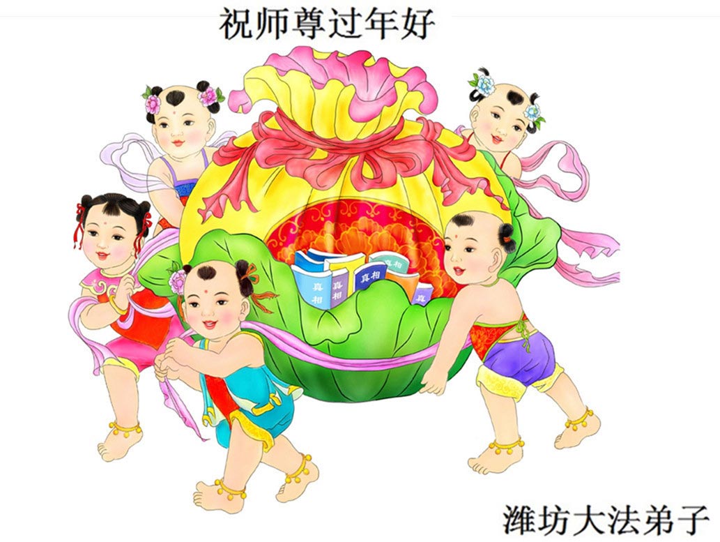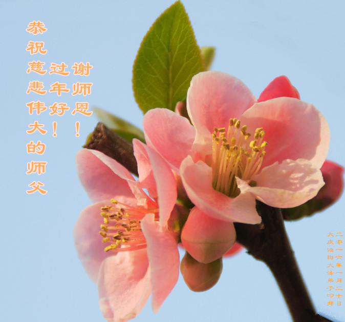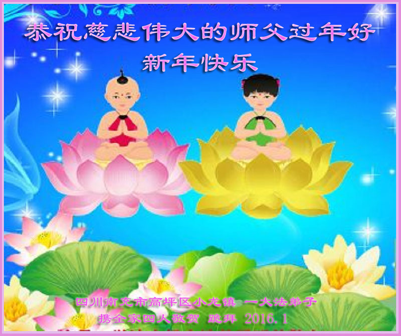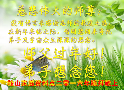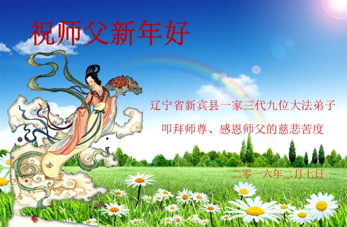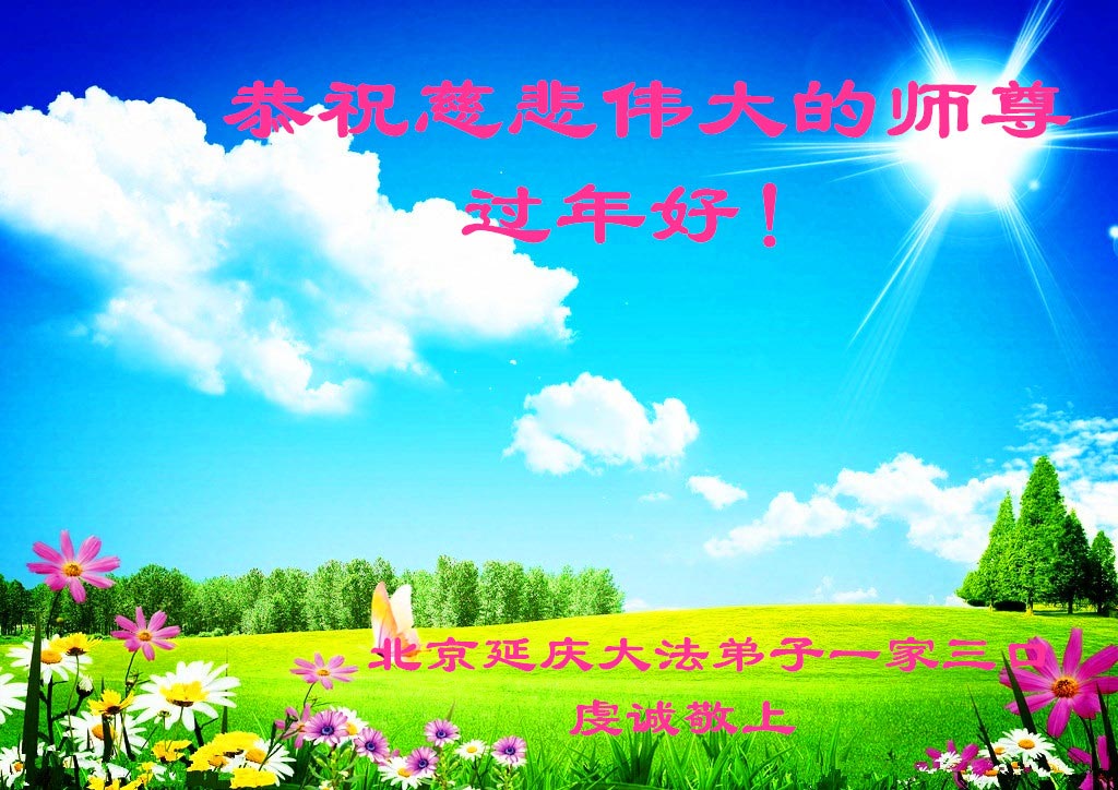 新年来到,弟子及明白真相的家人(妻子)给慈悲伟大的师尊拜年!师尊新年好!新年快乐!师尊您辛苦了!