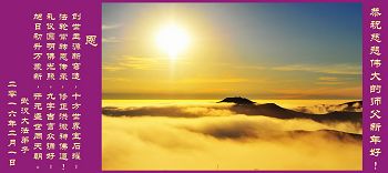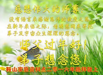 就在今年招收教师,本来我感觉希望不大,可是我被录取了。这是托大法的福,我要感谢师父。在这新年来临之际,我衷心的给师父拜年。祝师父新年好!