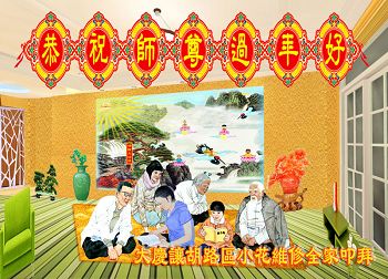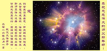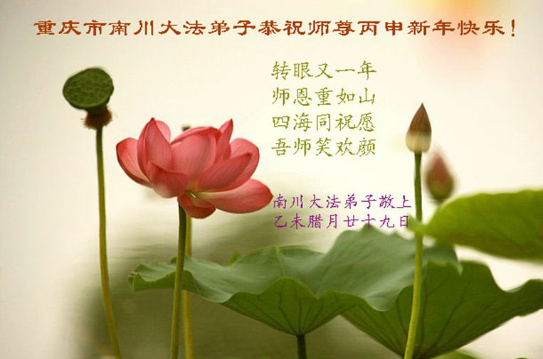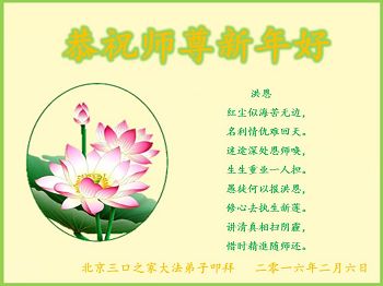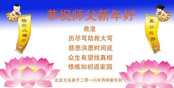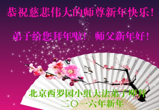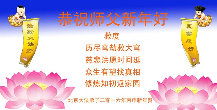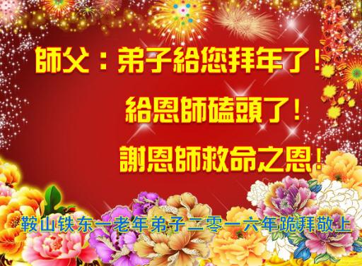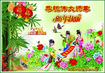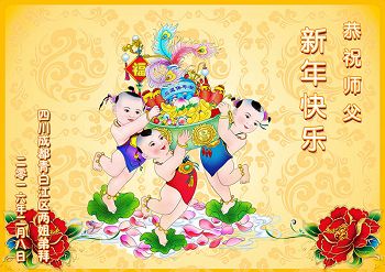 丙申年新年将到,老人借明慧网平台携众子孙给李大师叩拜,恭祝李大师丙申年新年快乐!