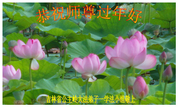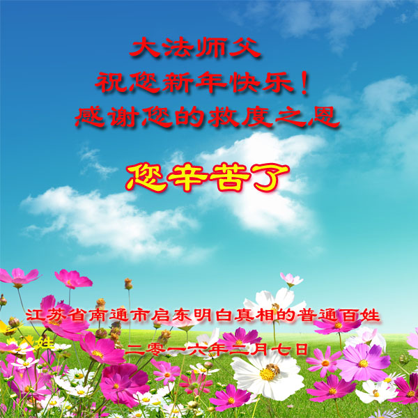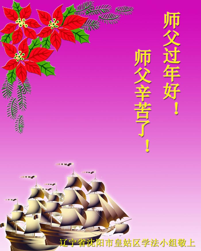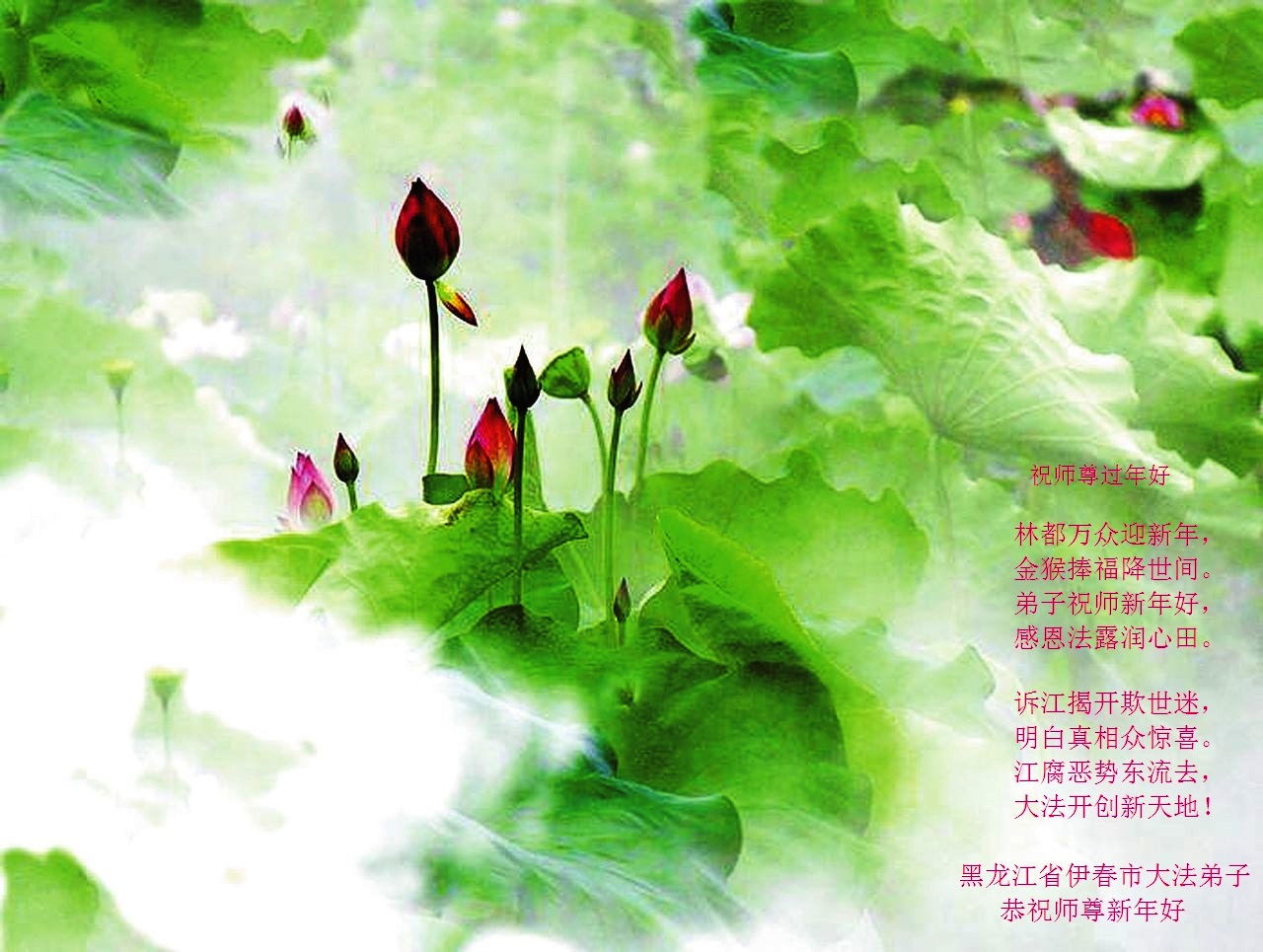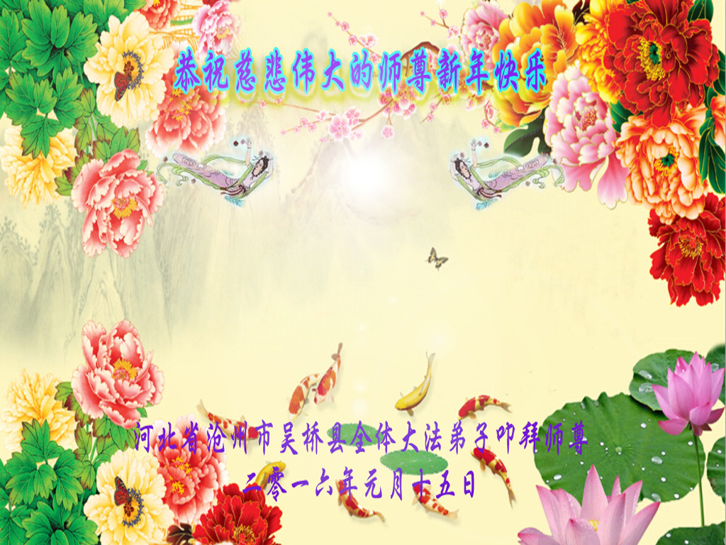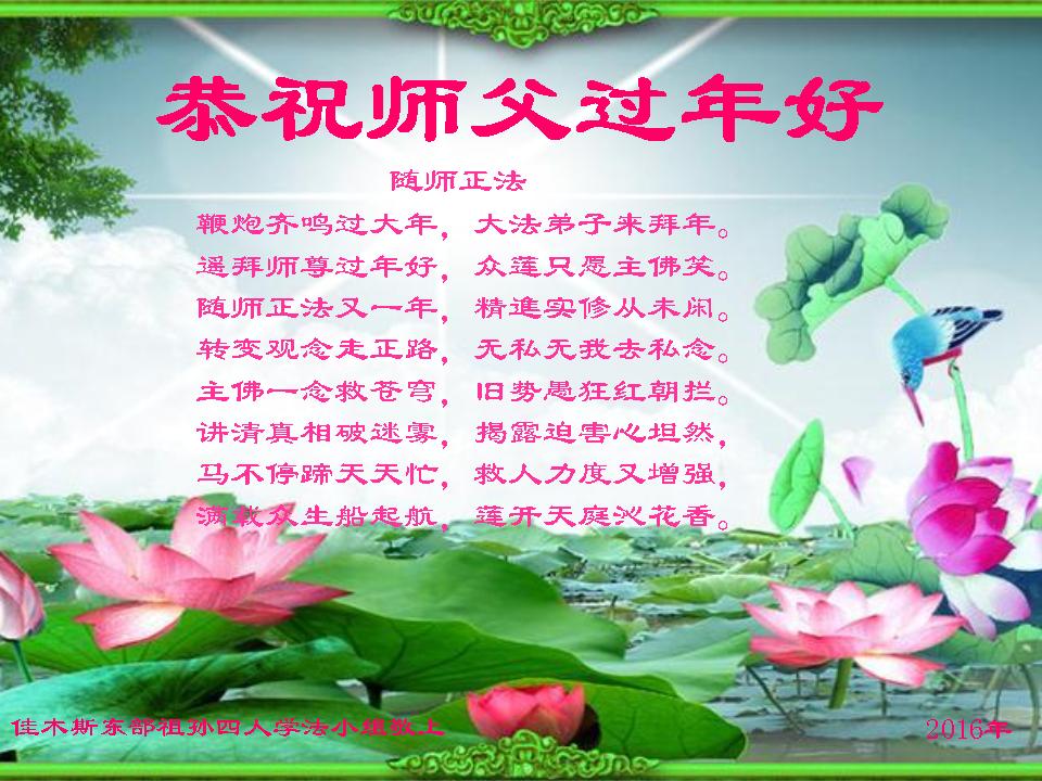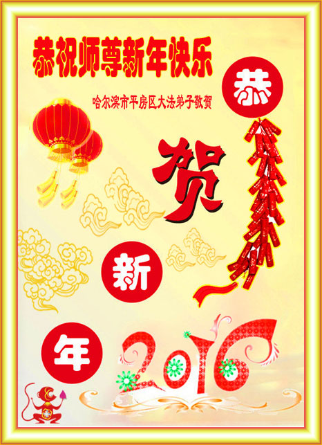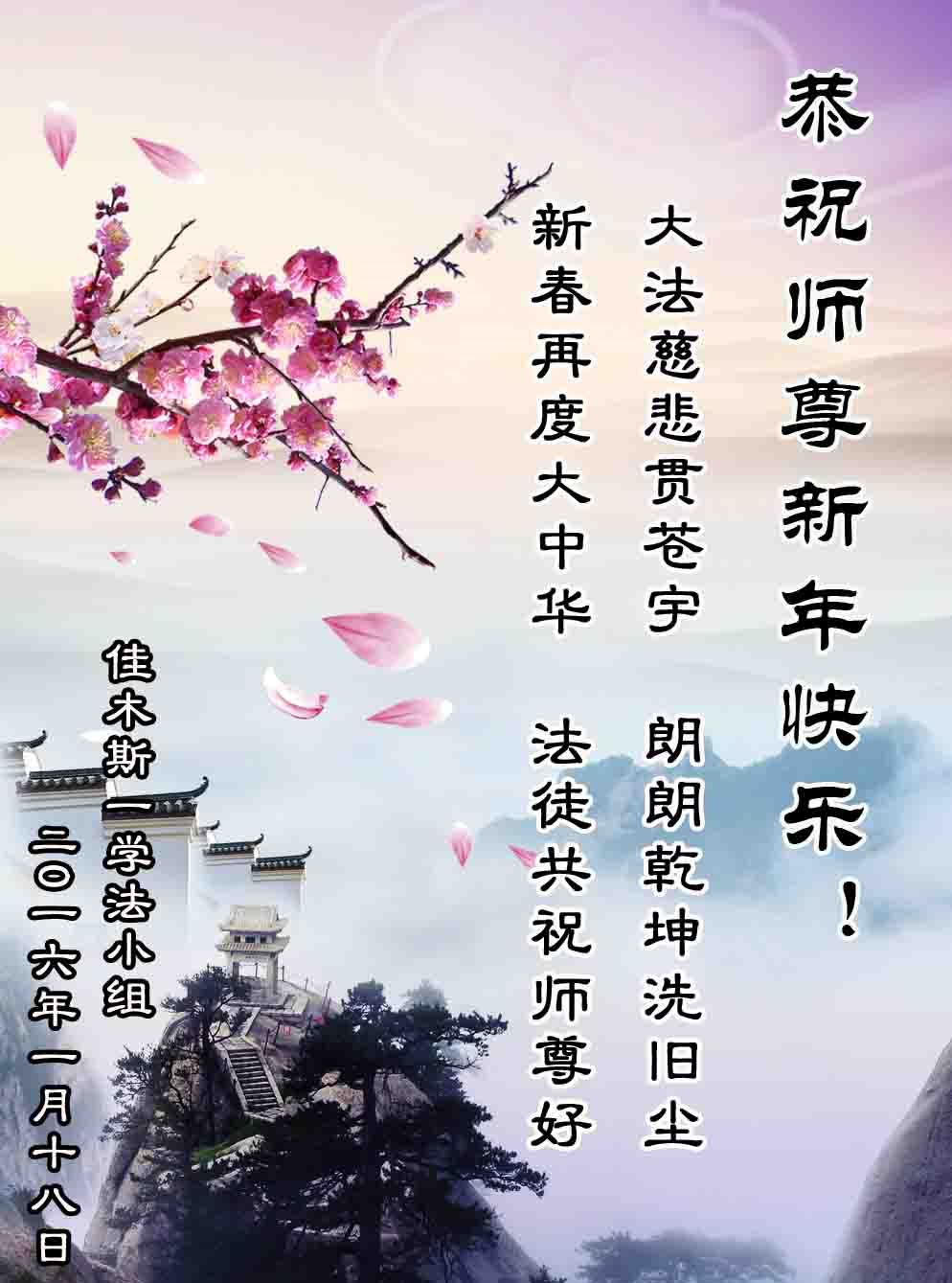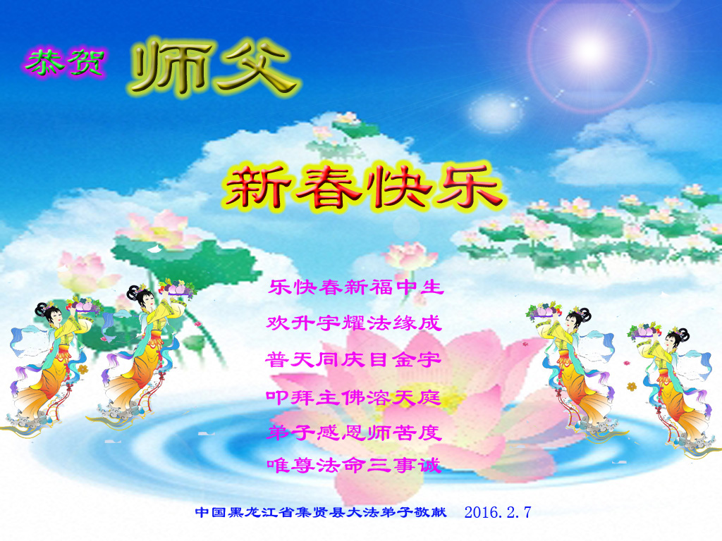 黑龙江装饰装修建筑的大法弟子及数百位明真相的家属、朋友、同事送上最真诚的祝福,恭祝李洪志师父新年快乐!