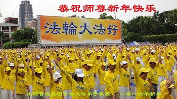 山东省蒙阴县大法弟子代表两个修炼家庭及明真相的亲人叩拜师尊