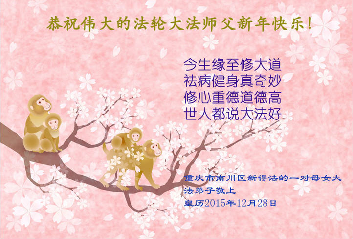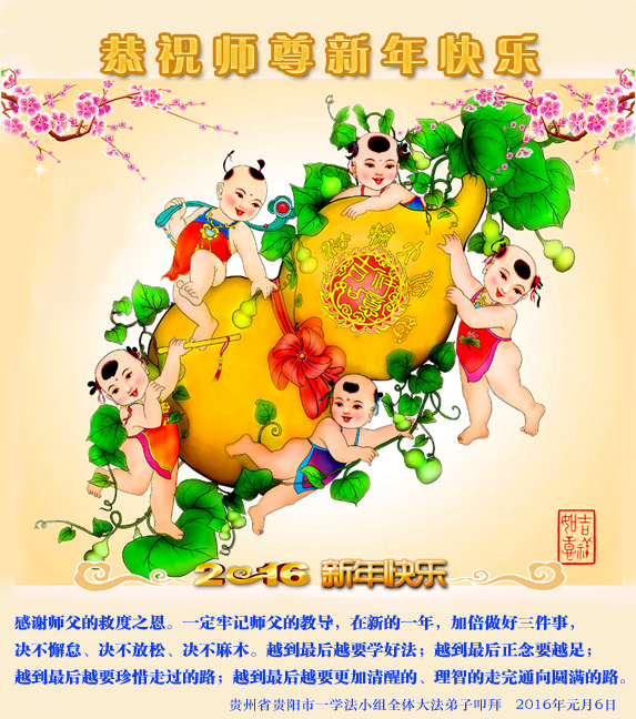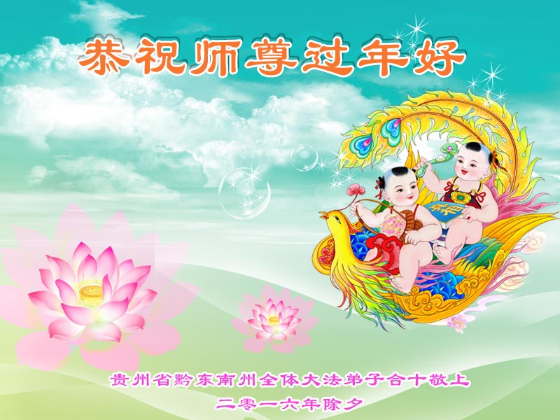 贵州一大法弟子与明真相的家人在猴年新春之际遥拜恩师:恭祝师尊新年快乐!