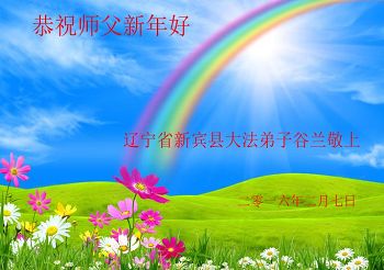 恭祝师父新年快乐!新年好!感谢大法师父多年来慈悲呵护,每当我遇到病痛和困难时,我都会诚心敬念:法轮大法好,真善忍好。很快就好,十几年了我们家孩子大人都没吃过药,真是“一人炼功全家受益”,感谢师父,感谢大法。再一次
